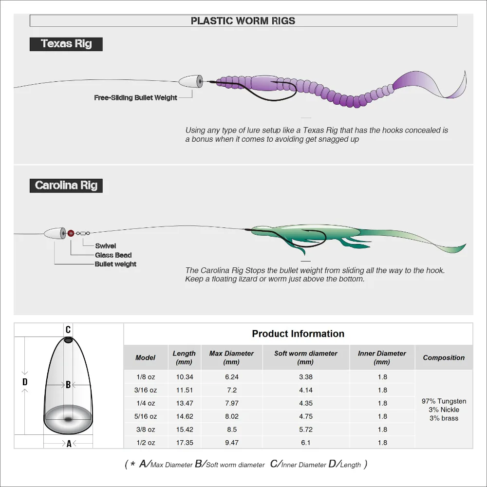 [Natación libre, fusión perfecta] Los pesos de gusano en forma de bala se deslizan a través de la cubierta de forma natural, con una base cóncava Para acunar el gusano en su lugar.