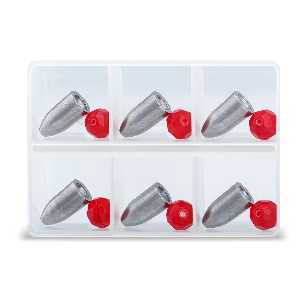 [Mejor almacenamiento, elija la preocupación] Este Almacenamiento de peso de tungsteno sin pintar en una caja pequeña, cada uno está asignado a una rejilla separada, lo más importante es que incluye cuentas de vidrio rojo de 6mm que se pueden usar en plataformas Carolina.