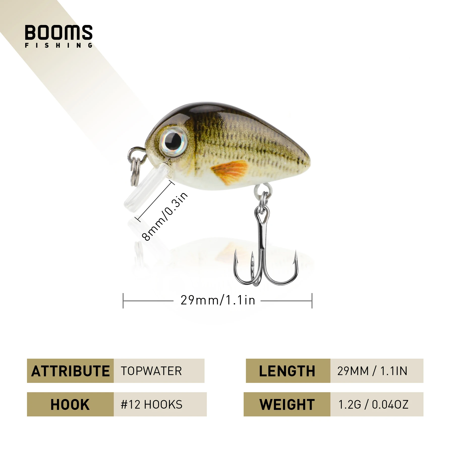 Booms Fishing CB2 5 uds Mini pequeños señuelos de pesca gordos Crankbait cebo de pez falso Artificial 29mm Wobblers duros calientes aparejos de señuelo