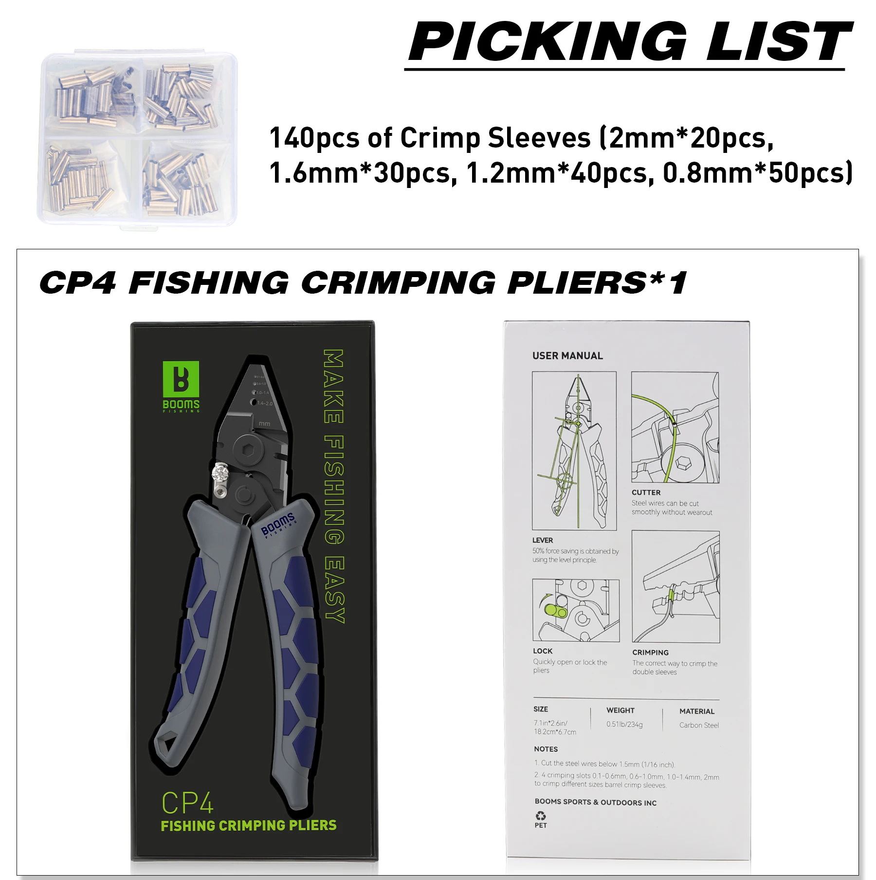 Crimp Sleeve Pliers: Cup to cup type crimping for use with oval sleeves and double barrel sleeves. Total 140pcs crimp sleeves included, 2mm x 20pcs, 1.6mm x 30pcs, 1.2mm x 40pcs, 0.8mm x 50pcs.