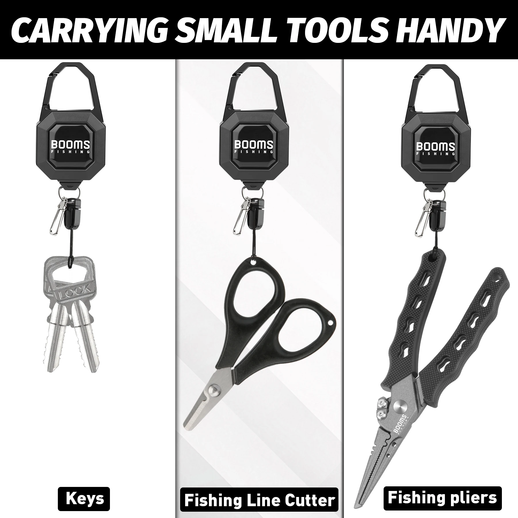 Asegure su equipo: el llavero retráctil se cuelga más fácilmente en su cinturón, mochila o chaleco de pesca con mosca y mantiene su equipo siempre a mano y nunca se pierde.