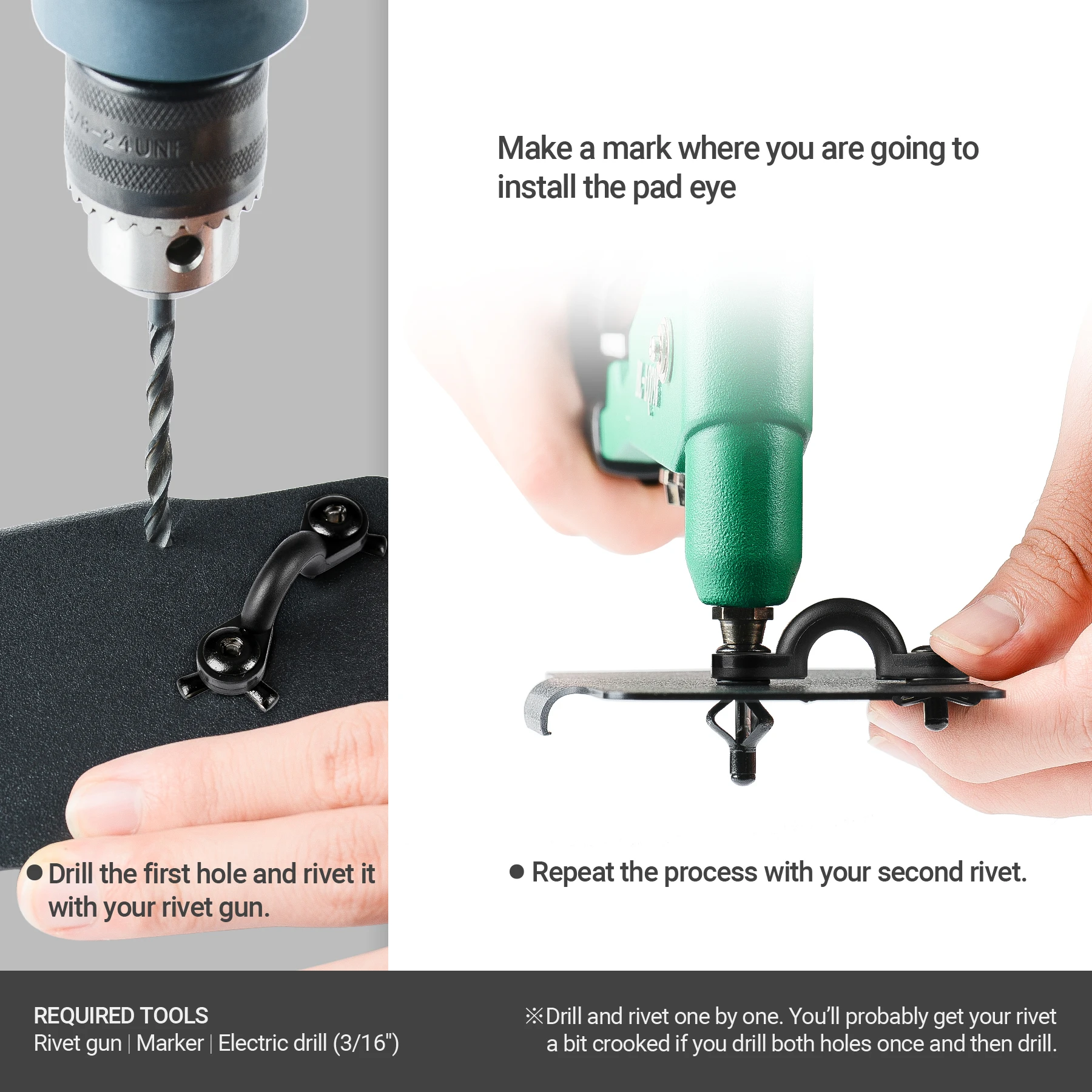 Los ojos de almohadilla negra están hechos de plástico molido inyectado, lo que proporciona puntos de fijación altos de 1/2" y 3/8" para asientos, correas, etc.
