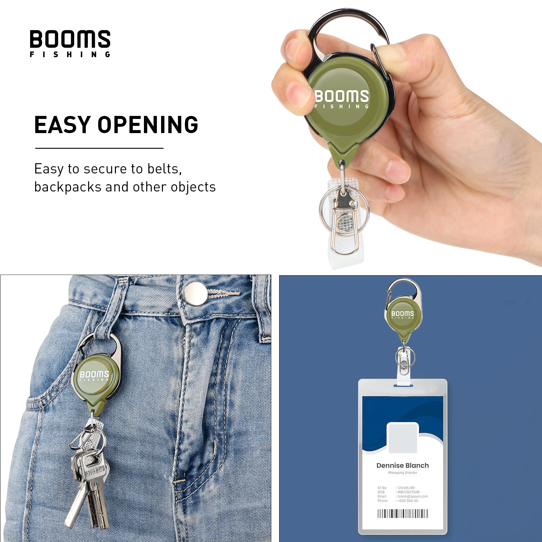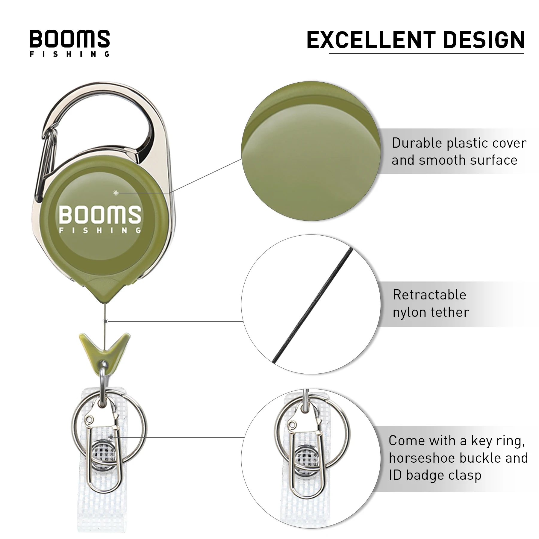 Suficiente fuerza de retracción:La fuerza de retracción de 2,6 onzas puede contener sus pinzas, pinzas, flotadores de mosca, accesorios de pesca con mosca, insignia de identificación, etc.