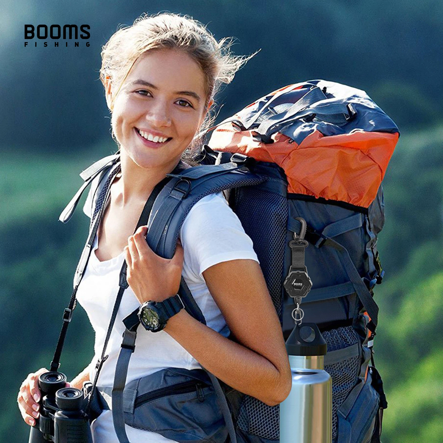 【360°CARABINADOR: La parte superior utiliza el modo de suspensión con correas y mosquetón, que es más fácil de colgar en su cinturón, mochila u otros lugares, y la hebilla de senderismo se puede girar 360 grados para facilitar su uso.