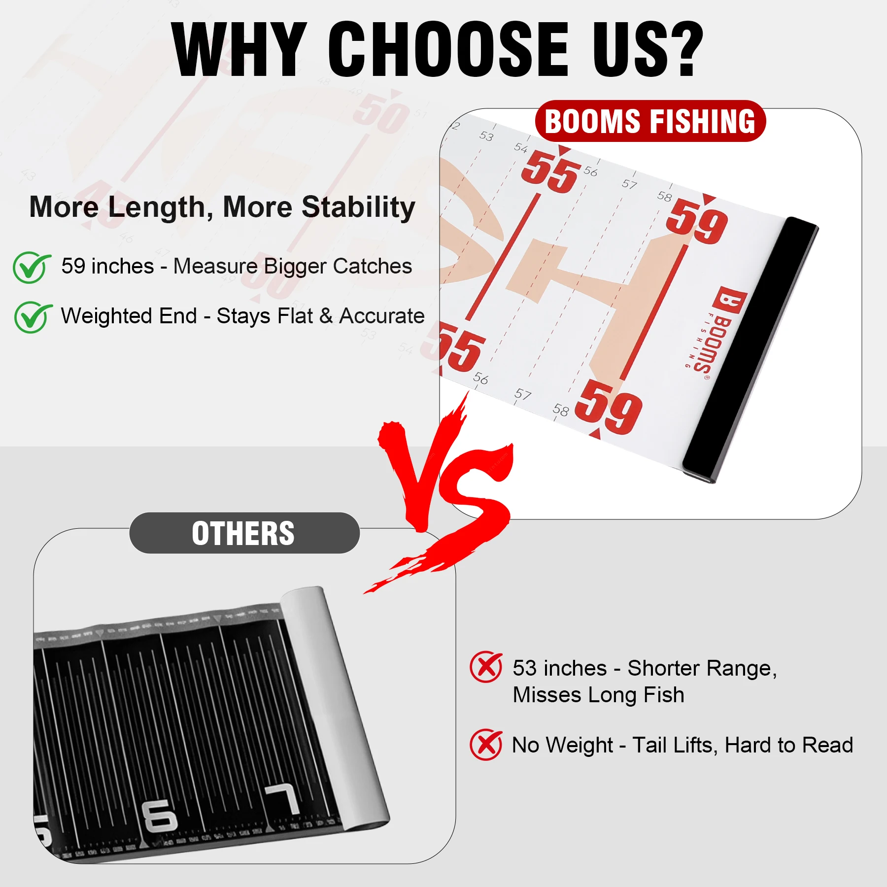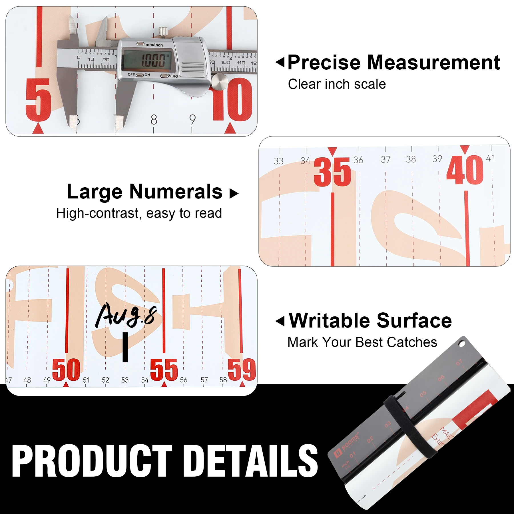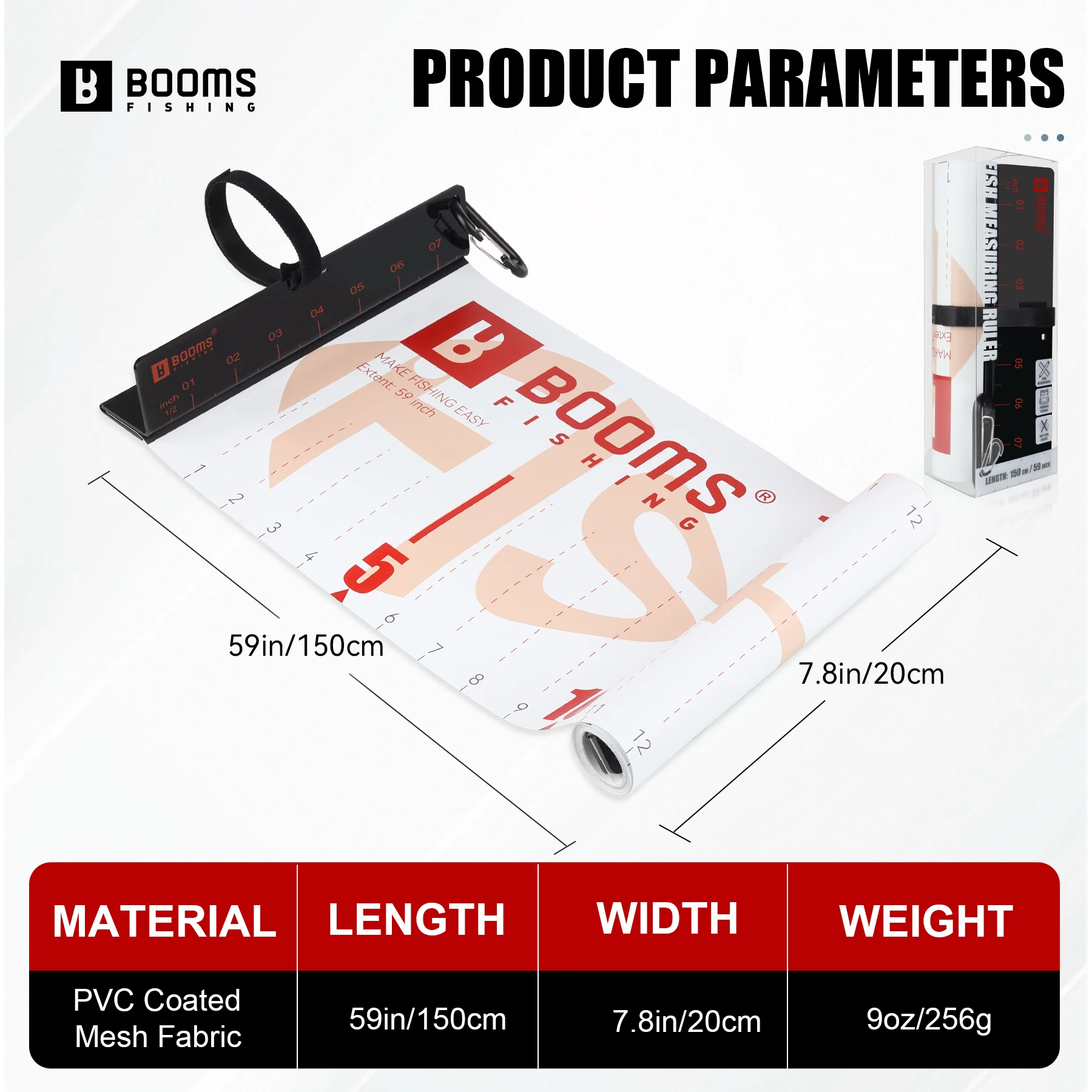 Booms Fishing RL4 59in regla medidora de peces impermeable duradera plegable PVC regla medidora de peces herramienta de aparejos de pesca al aire libre