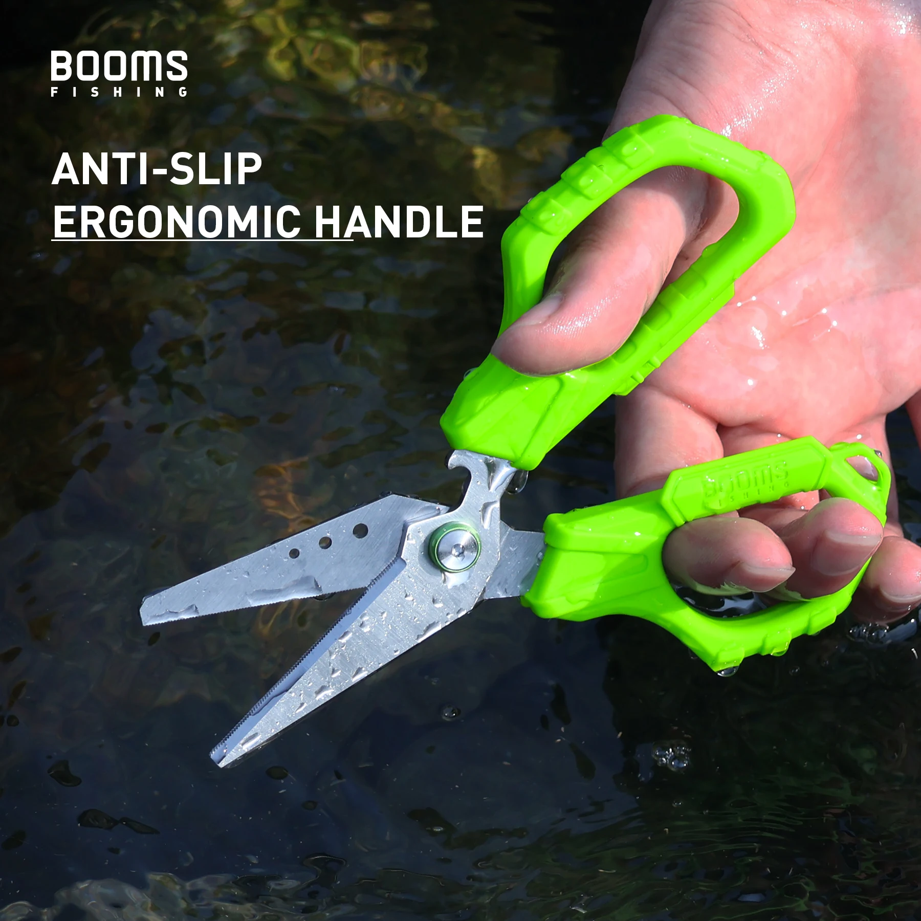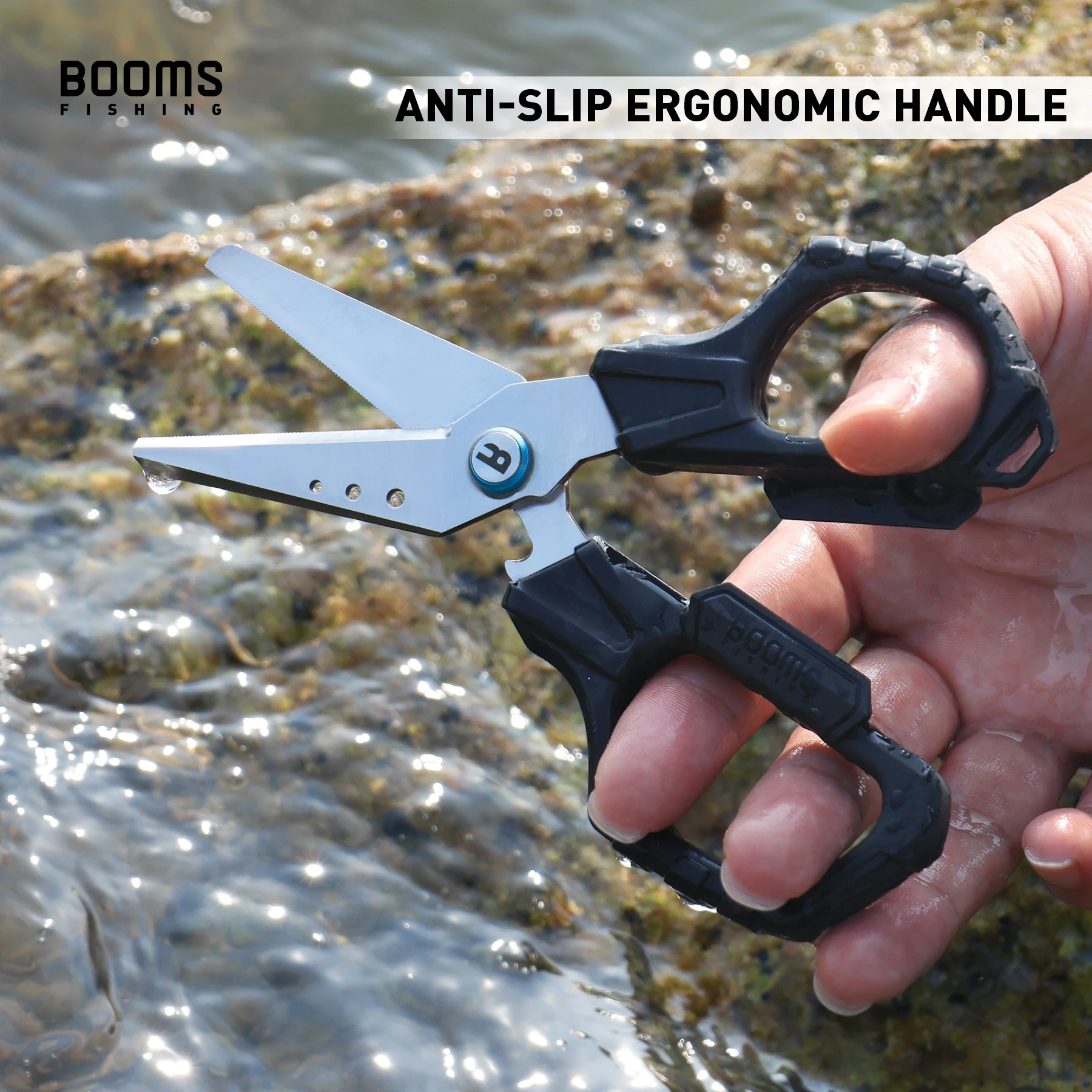 Agarre cómodo:Las asas antideslizantes proporcionan comodidad y un agarre seguro para el mejor rendimiento de las tijeras de pesca. El mango ergonómico extra grande hace que sea fácil de agarrar, incluso si usa guantes de pesca.