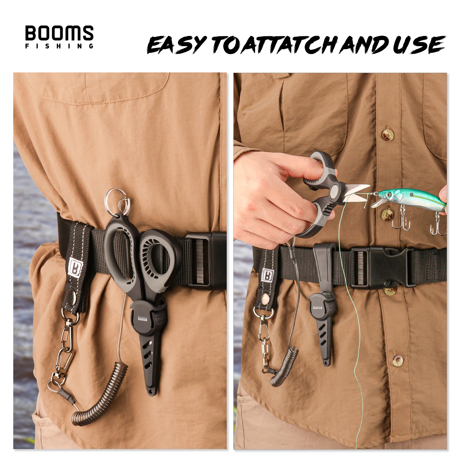 Súper tijeras de pesca. El cable corta bien. Lo principal está siempre a mano gracias a la cubierta del cinturón y no se resbala en ningún lugar porque está atado.