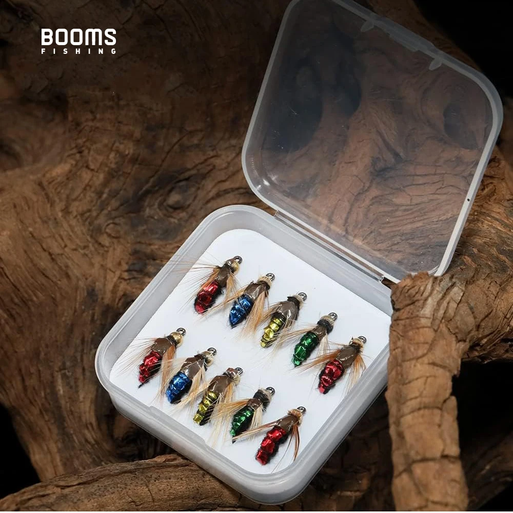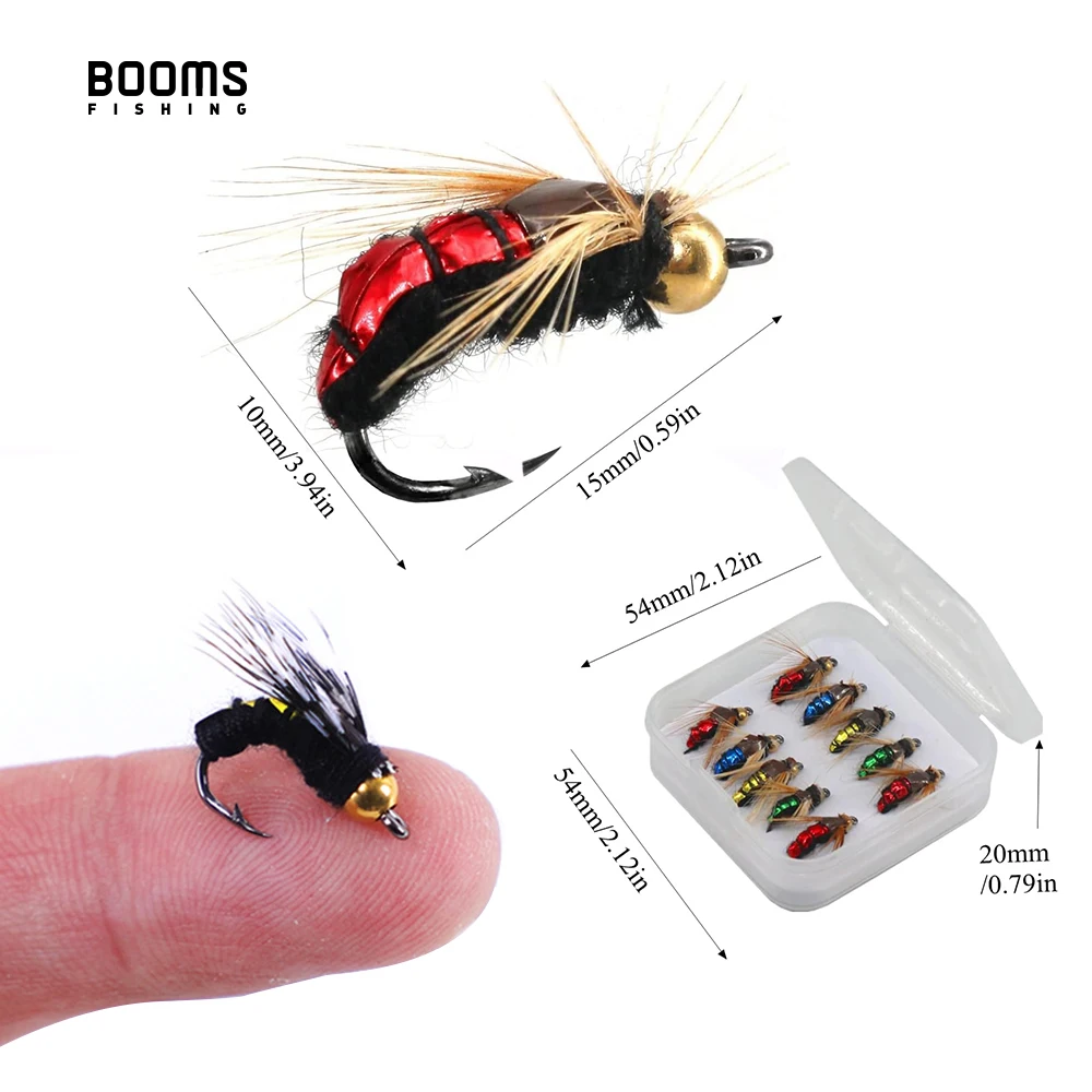 Booms Fishing-señuelo de pesca con mosca FY1, 10 piezas, cabeza de cuentas de latón, hundimiento rápido, ninfa, Scud, gusano, trucha, cebo Artificial