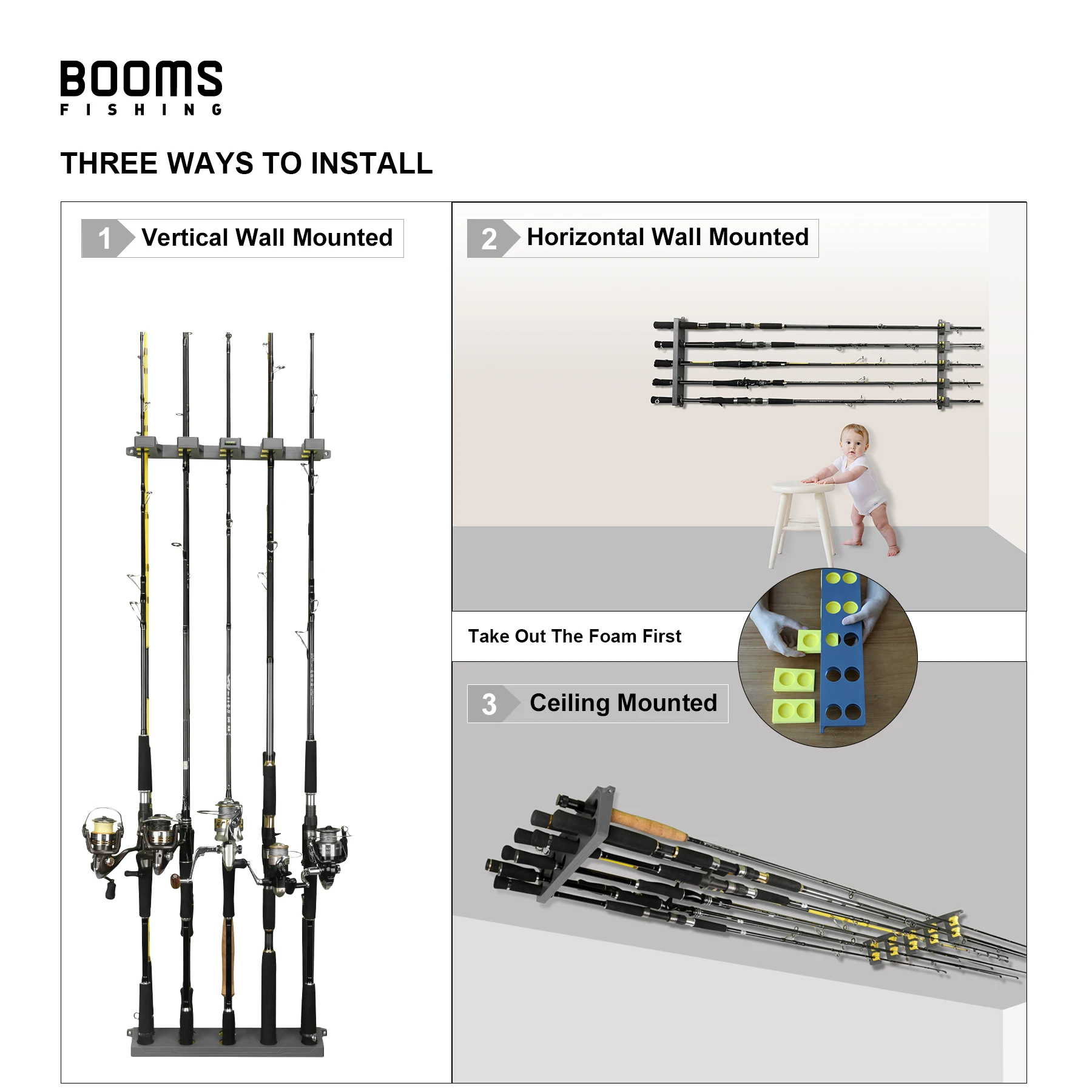 [TRES FORMAS DE INSTALACIÓN]Fácil de instalar, se monta fácilmente con 4 tornillos, tres formas de instalar los soportes para varillas: montado en la pared vertical, montado en la pared horizontal, montado en el techo.Ayuda al pescador a resolver el problema de que no puede instalar ni almacenar sus cañas de pescar favoritas en diversas condiciones.Permítales administrar sus cañas de pescar como deseen en un entorno limitado.Haz que la pesca sea más fácil y gratuita.Nota: Primero saque la espuma para montar en horizontal y en techo.