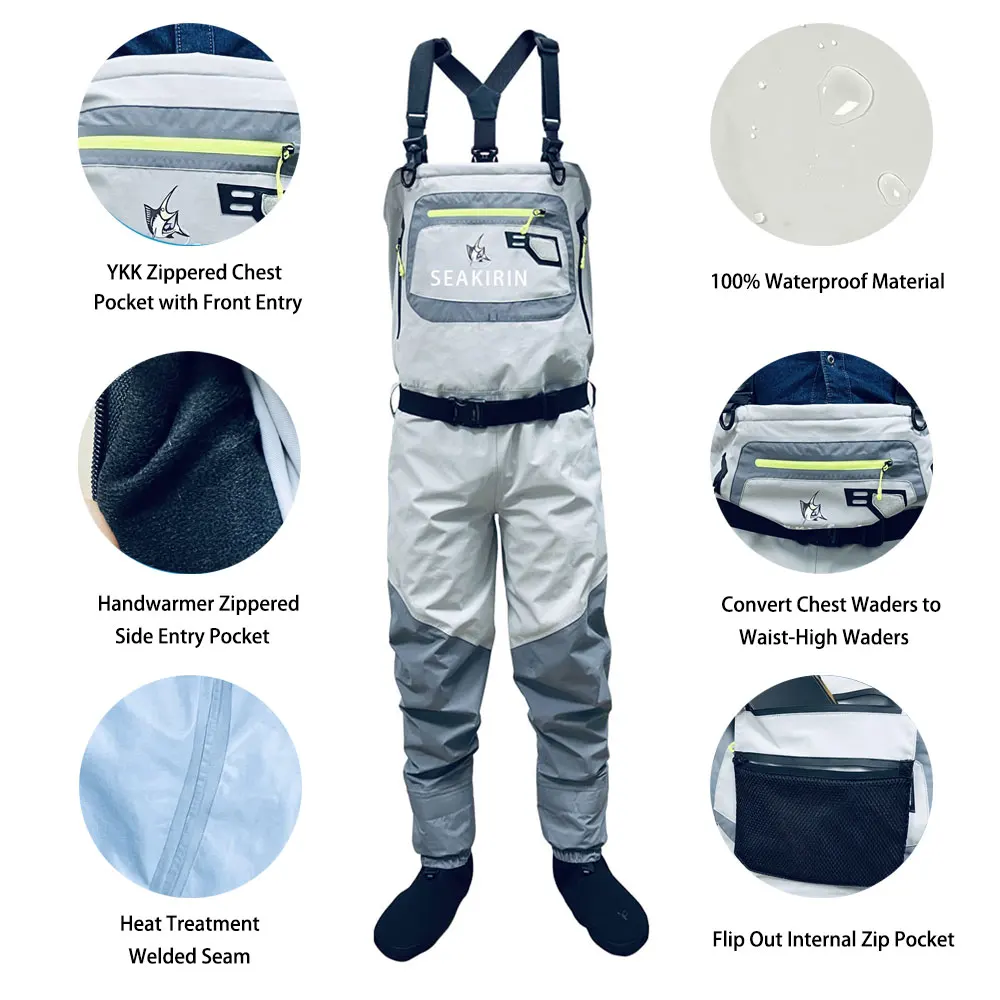 Botas convertibles ultraligeras para hombre, pantalones impermeables transpirables de cintura en el pecho, ropa para pesca con mosca y caza