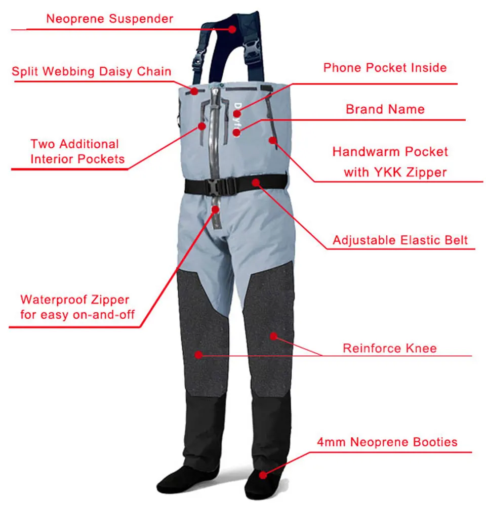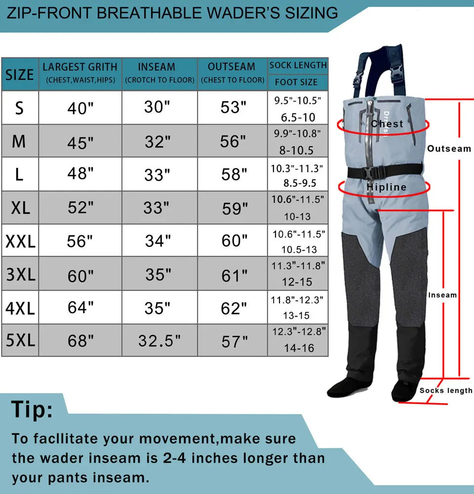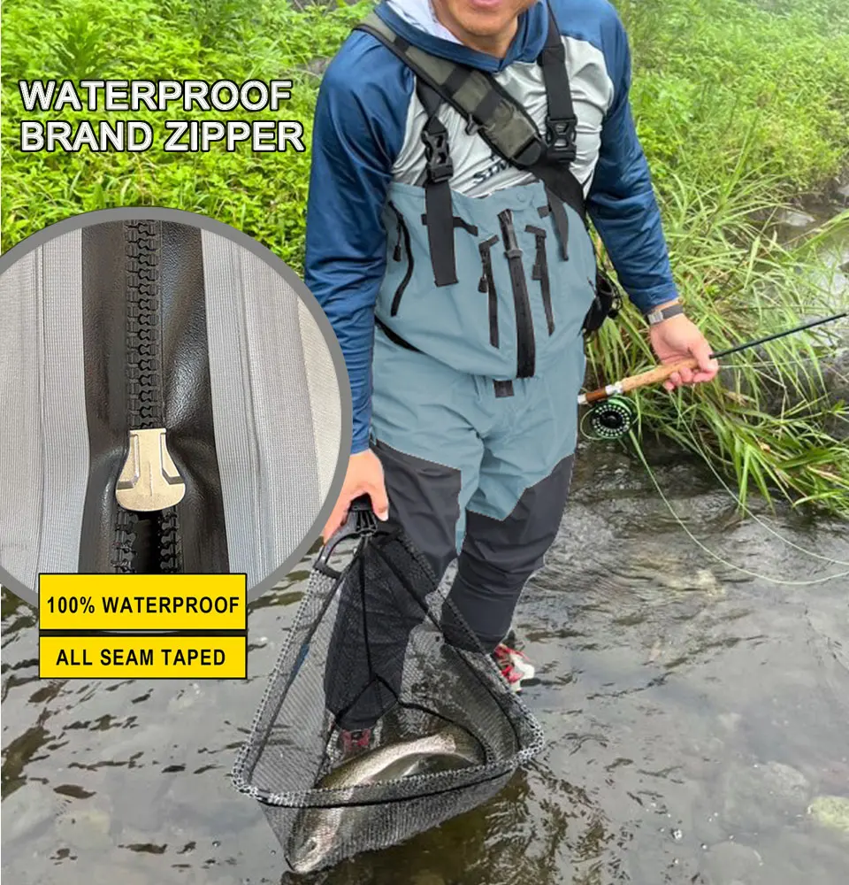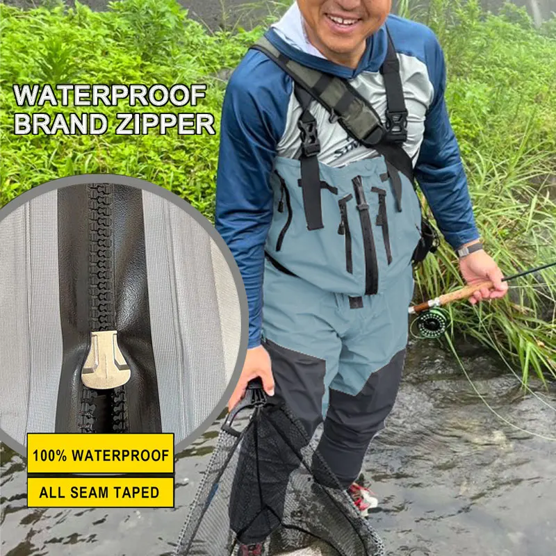 Botas de pesca con mosca en el pecho con cremallera frontal grande y alta para hombre, impermeables, transpirables, con cremallera, para caza, pantalones para vadear