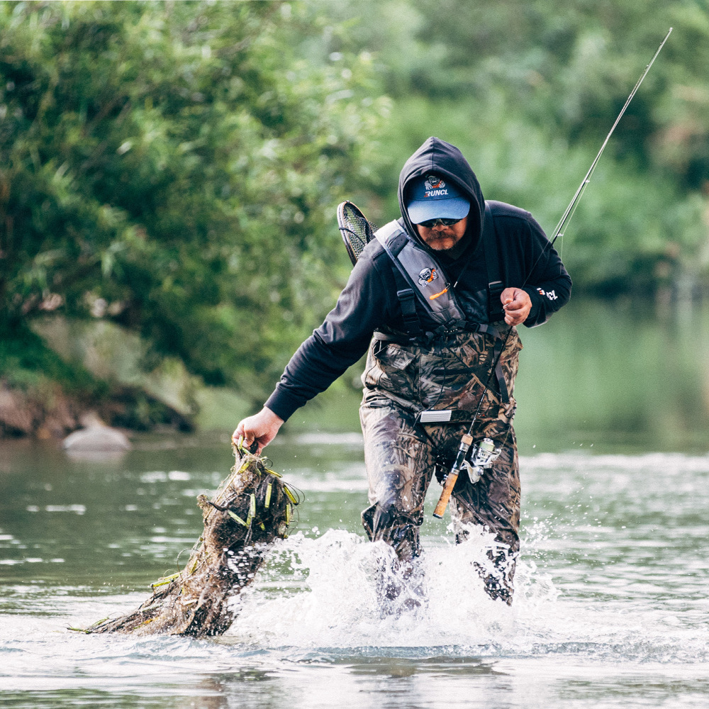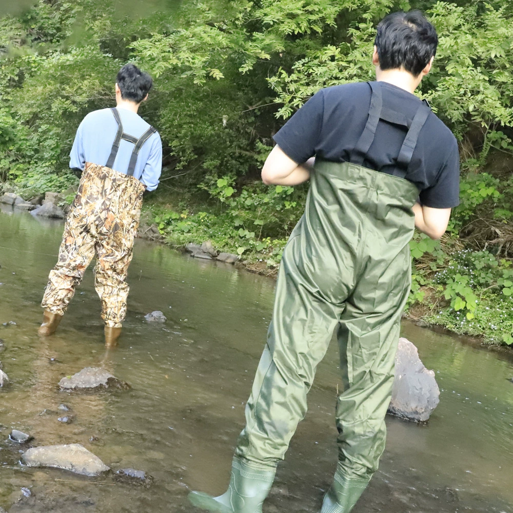 Botas de pesca de nailon grande, pantalones de agua de pesca de medio cuerpo con botas, cintura elástica, hebillas de liberación rápida ajustables
