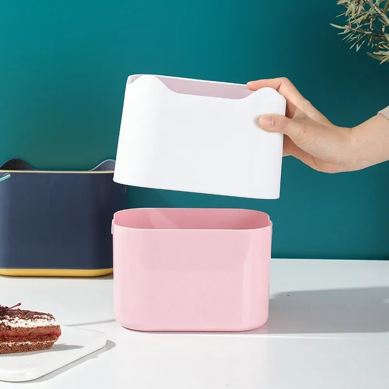 Cubo de basura de escritorio tipo prensa, Mini cocina, dibujos animados bonitos con tapa, tocador para dormitorio, tocador, oficina, caja de almacenamiento de basura