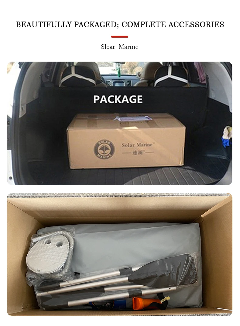 Accesorios: bomba de aire, paleta, soporte para caña de pescar, bolsa de transporte, kit de reparación, etc.