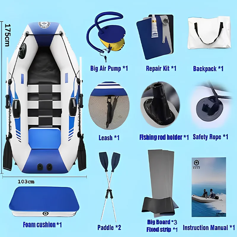 Material del casco: PVC de 0,7 mm (construcción de tres capas, material multicapa, reforzado con poliéster y tiene una alta resistencia del hilo)