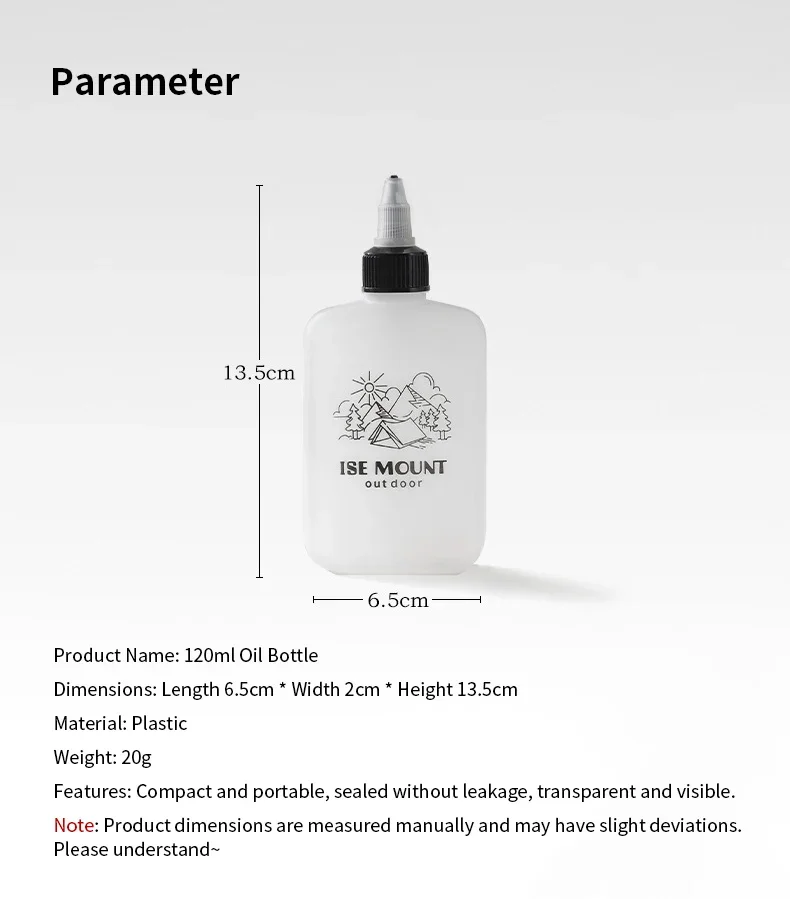 120ml de capacidad, cómodo de llevar: Puede contener varios condimentos líquidos, ni demasiado ni muy poco, solo para uso en exteriores.