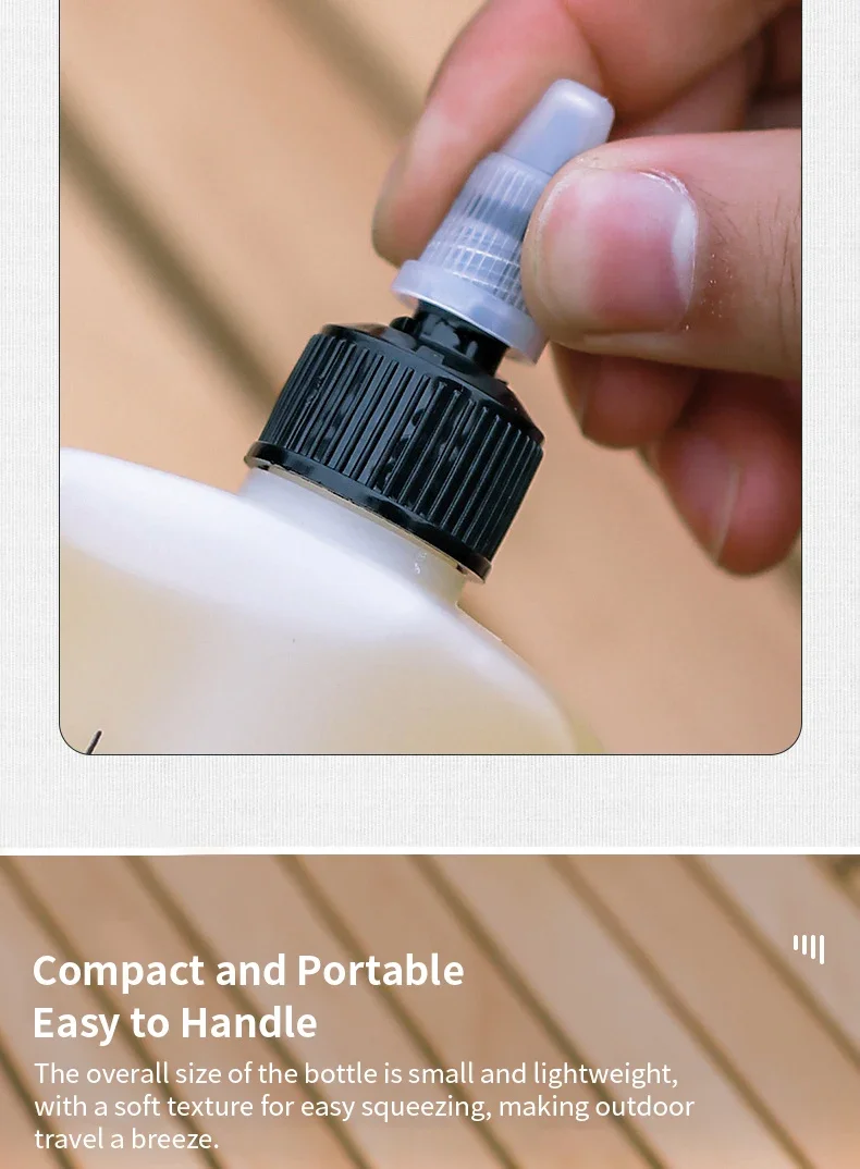 Compacto y portátil, fácil de manejar: el tamaño total de la botella es pequeño y liviano, con una textura suave para apretar fácilmente, lo que hace que los viajes al aire libre sean fáciles.