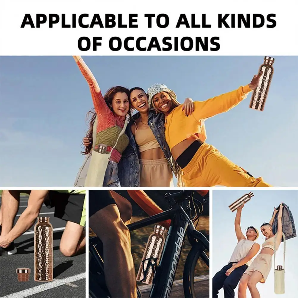 Botella de agua deportiva de cobre de 800ML, patrón de martillo, gran capacidad, a prueba de fugas, portátil, para exteriores, ciclismo, gimnasio, Fitness, viaje, galvanoplastia, taza para beber