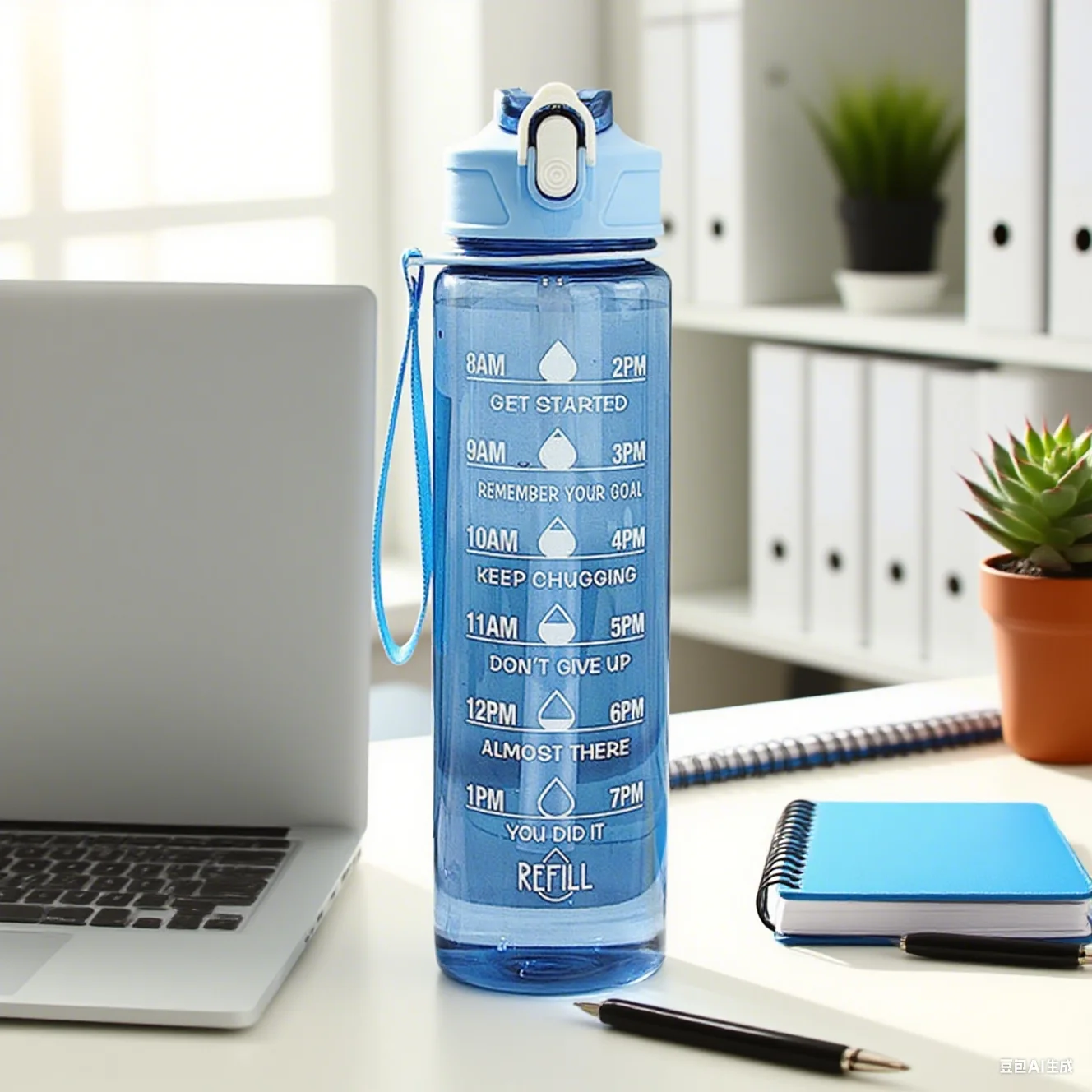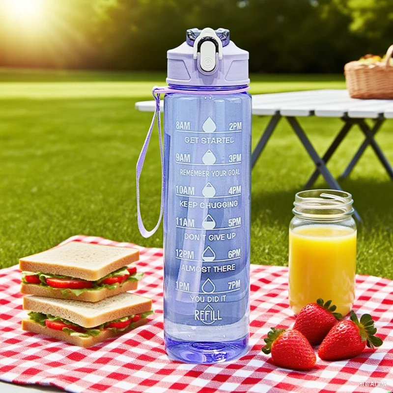 Botella de agua deportiva de gran capacidad, vaso de plástico a prueba de fugas con escala de tiempo, adecuado para viajes, Fitness, deportes, 750ml, 1 ud.