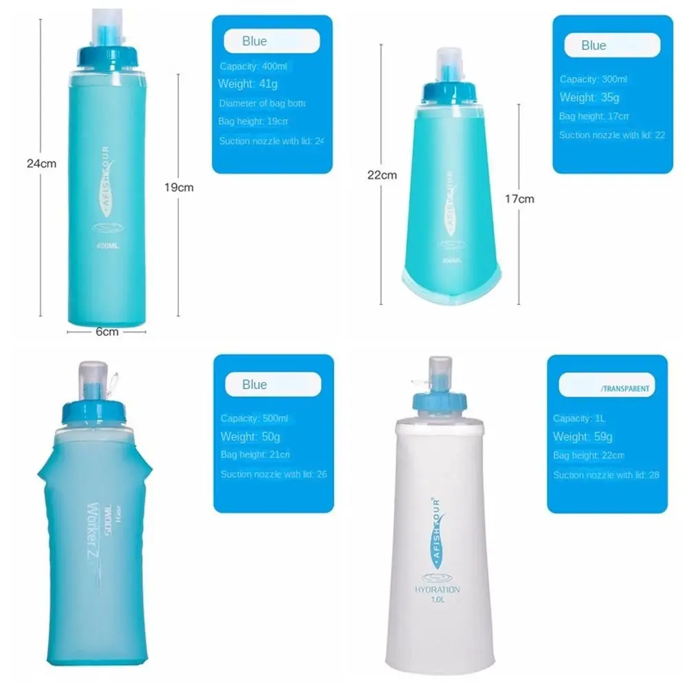 Material: TPU Color: Azul/transparente (opcional) Capacidad: 300ml /400ml/500ml/1000ml (opcional) Temperatura del agua: 0-40 ° Lista de paquetes: 1 botella de agua. Nota: Permita una diferencia de 1-3cm debido a la medición manual. Debido a la diferencia de luz y pantalla, el color del artículo puede ser ligeramente diferente al de las imágenes.
