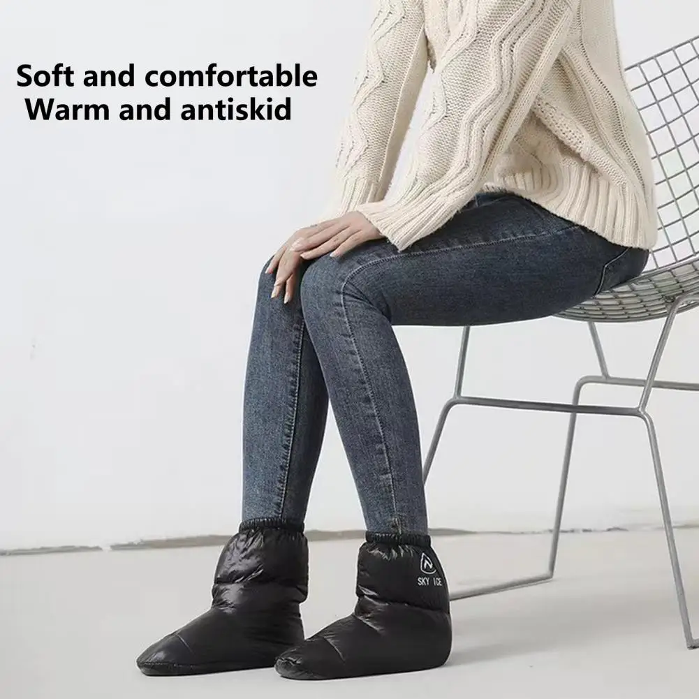 1 Pair Foot Warm Covers Soft Tear Resistant Anti-scratch Waterproof Warm Feet Fluffy Winter Warm Down Footwear for Outdoor