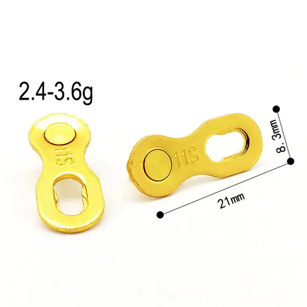 100% de alta calidad y nuevo Tamaño: 6-8 s / 9s / 10s / 11S Color: plata, oro Material: metal Usos: Cadena de bicicleta, hebilla mágica, conector de cadena Cantidad: 1 par Conector de bicicleta Tamaño del producto: 8 velocidades (6 7 \ 8 universal): 20x7,1x5mm/0,79x0,28x0,20 "9 velocidades: 20x6,5x5mm/0,79x0,26x0,20" 10 velocidades: 20x6x5mm/0,79x0,24x0,20"