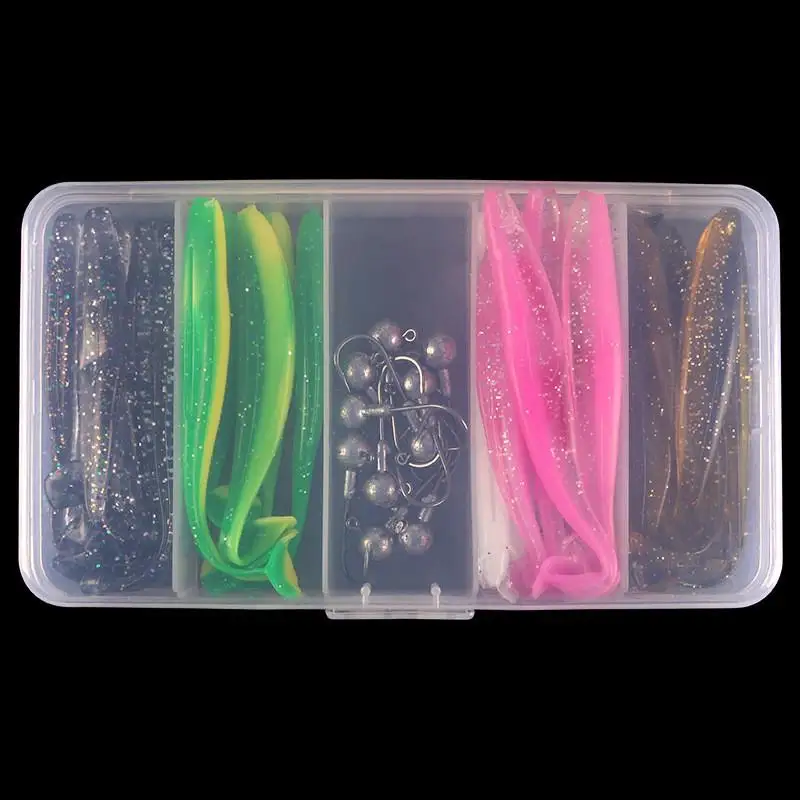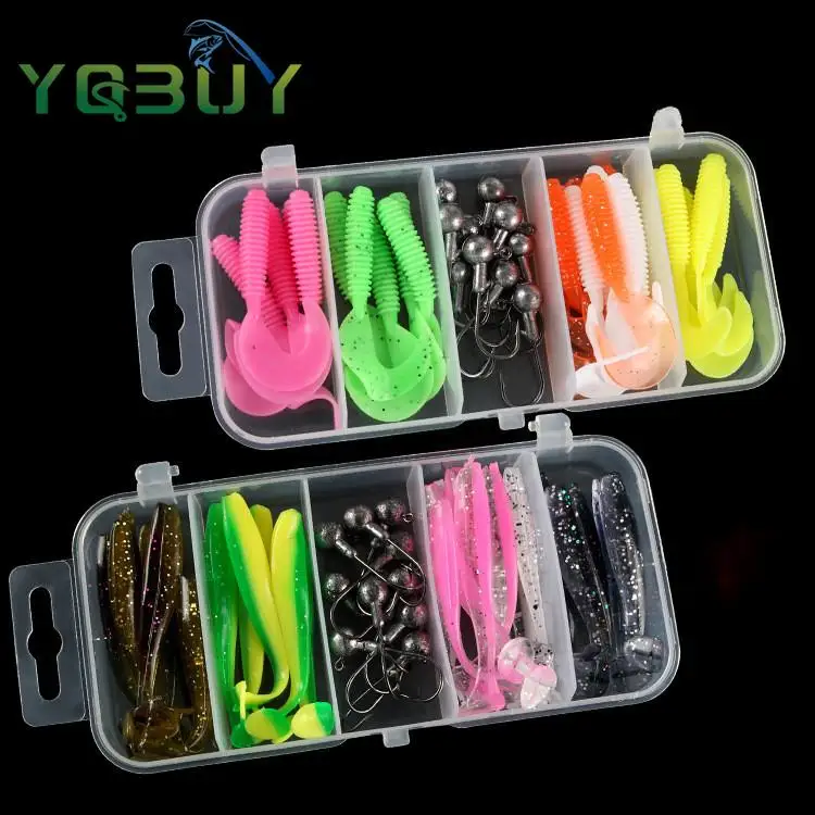 2#: 25 cebos blandos, 5 g de ganchos de plomo * 10 piezas, 112 g