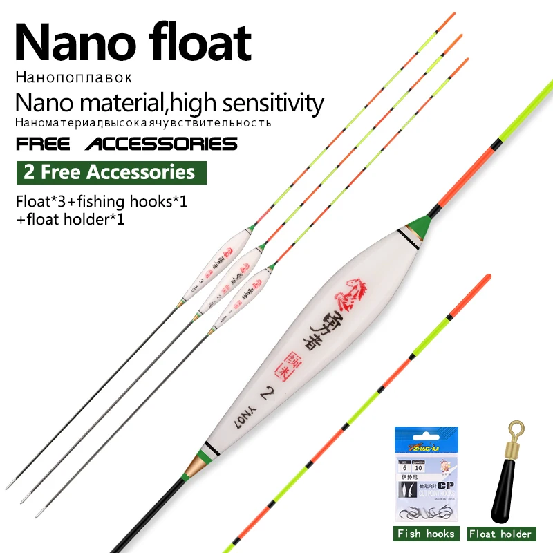 Nano flotador de 3 + 1 anzuelo de bolsa + 1 boya de asiento de agua dulce, flotador de pesca de alta sensibilidad, accesorios de herramientas de pesca Bobber Vertical