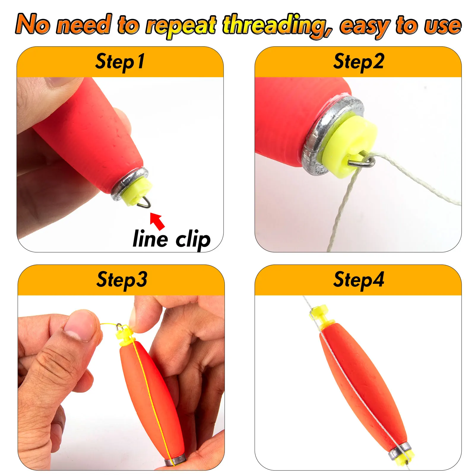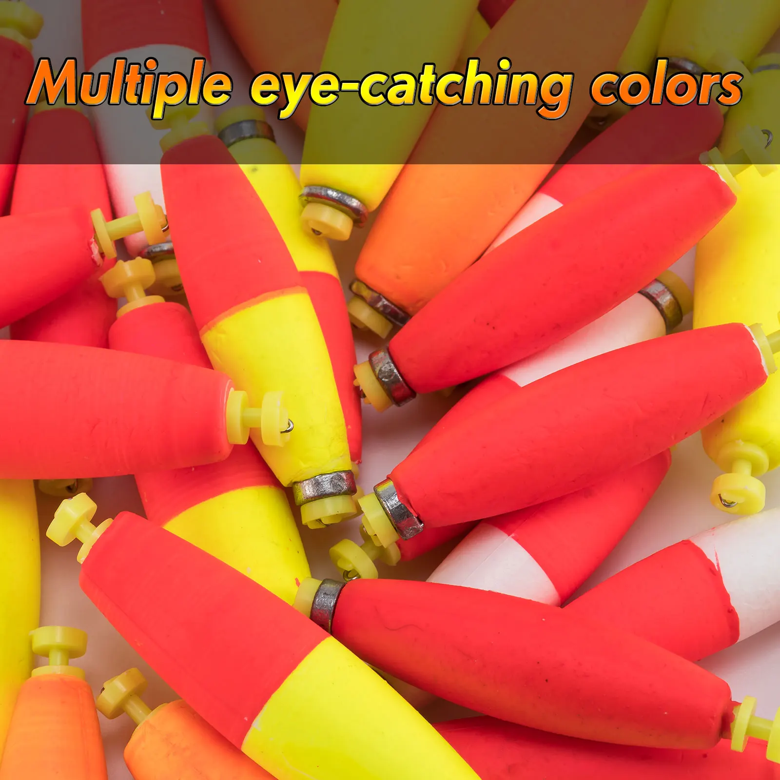 Material Premium:Estos flotadores están hechos de espuma EVA, resorte, plástico y plomo, por lo que son duraderos, fuertes y no se deforman fácilmente.