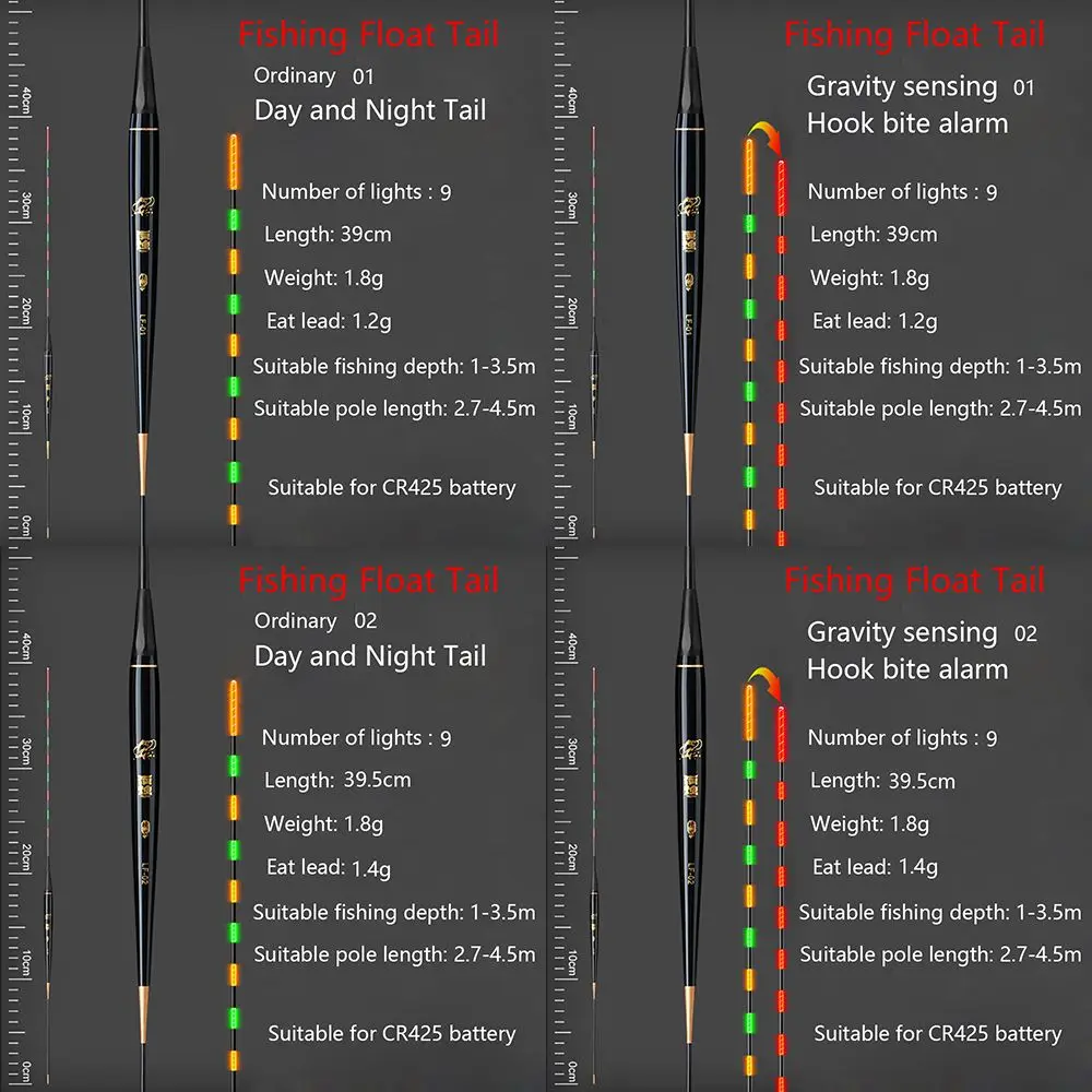 100% brand new and high quality Material:Nano Feature 1: Gravity sensing, not afraid of wind and waves, accurate signal Feature 2: The top is bolder and more eye-catching Colour:As shown Product does not contain batteries Lead weight:1.2g/1.4g/1.9g/2.4g/2.7g/3g Package Included: 1 PC Electronic Float tail(Don't Included Battery)