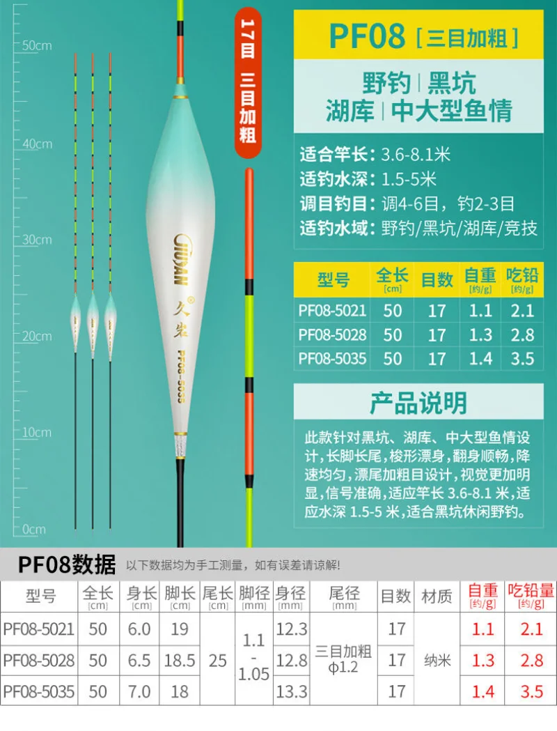 1. El paquete solo incluye 3 flotadores de pesca (1 juego) y una caja de embalaje, excluyendo otros artículos.