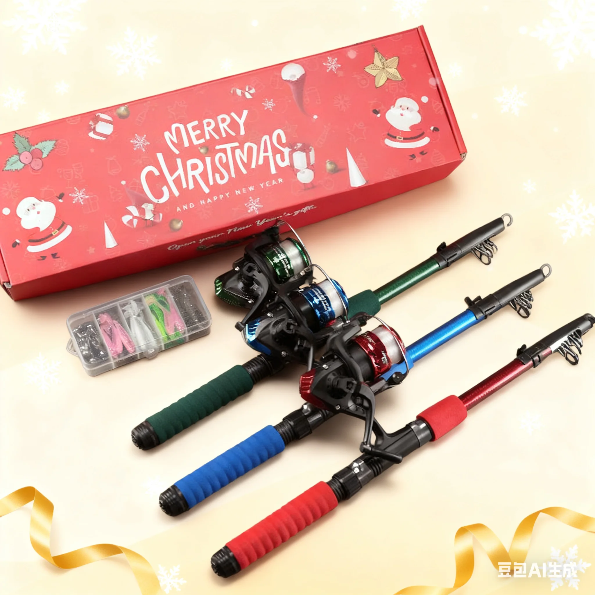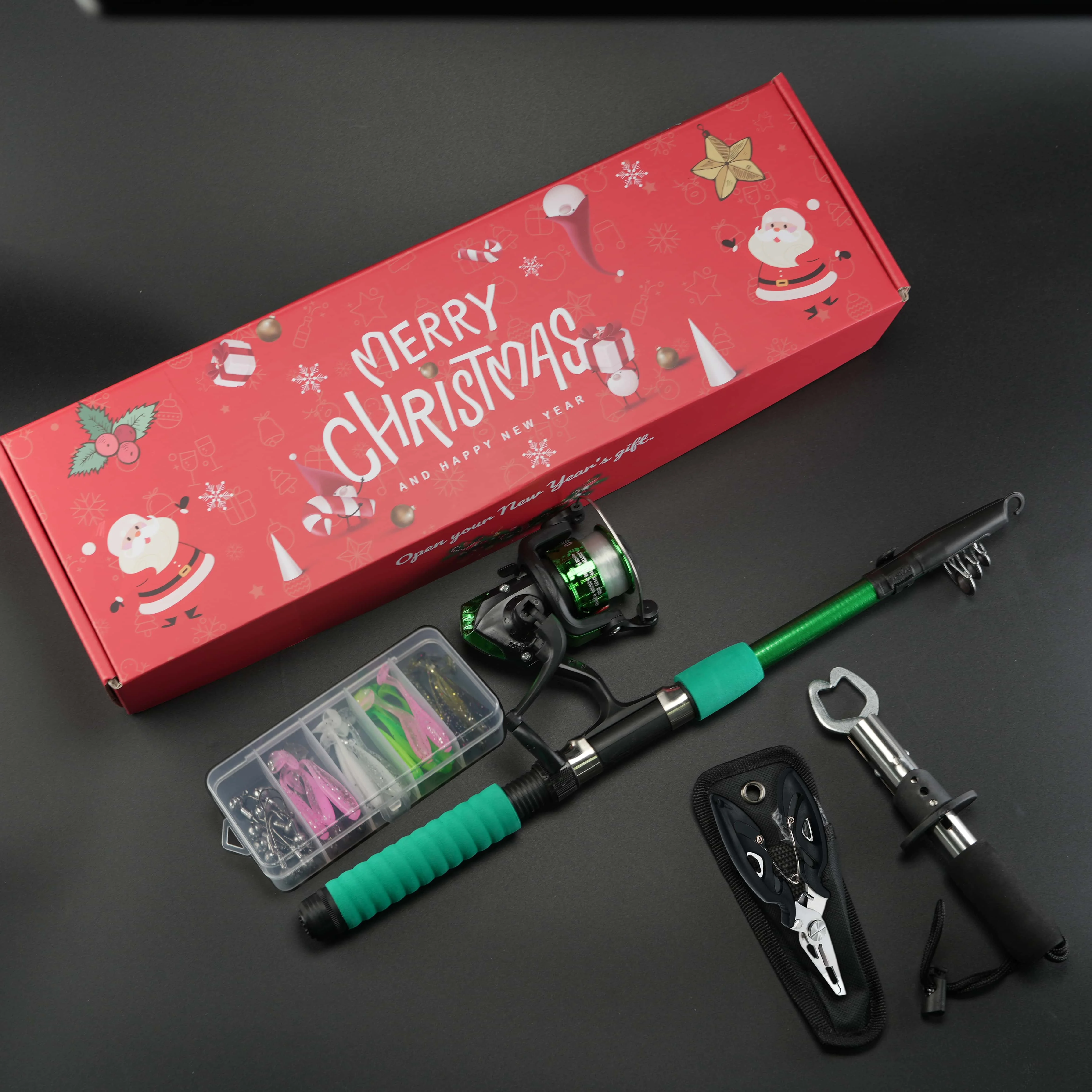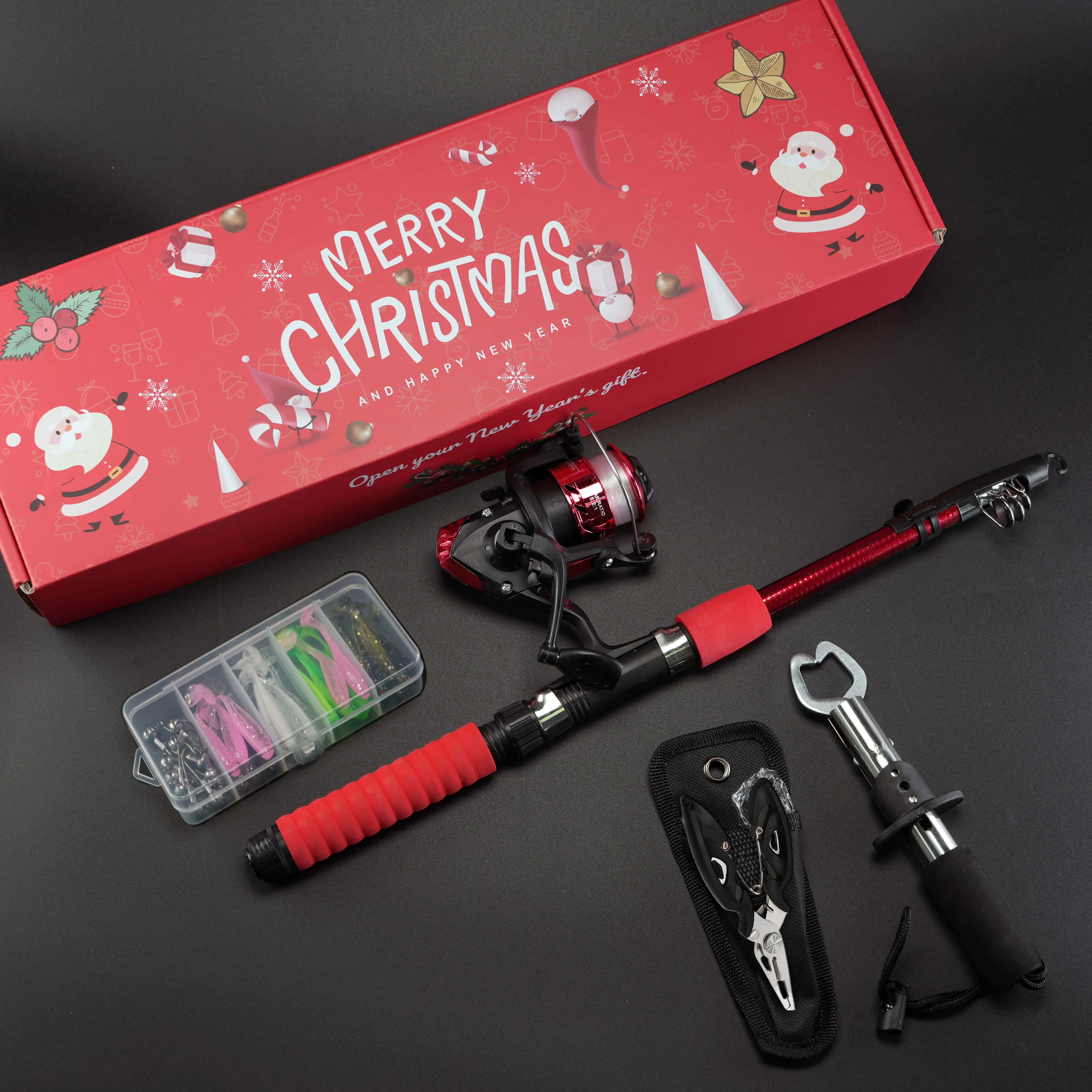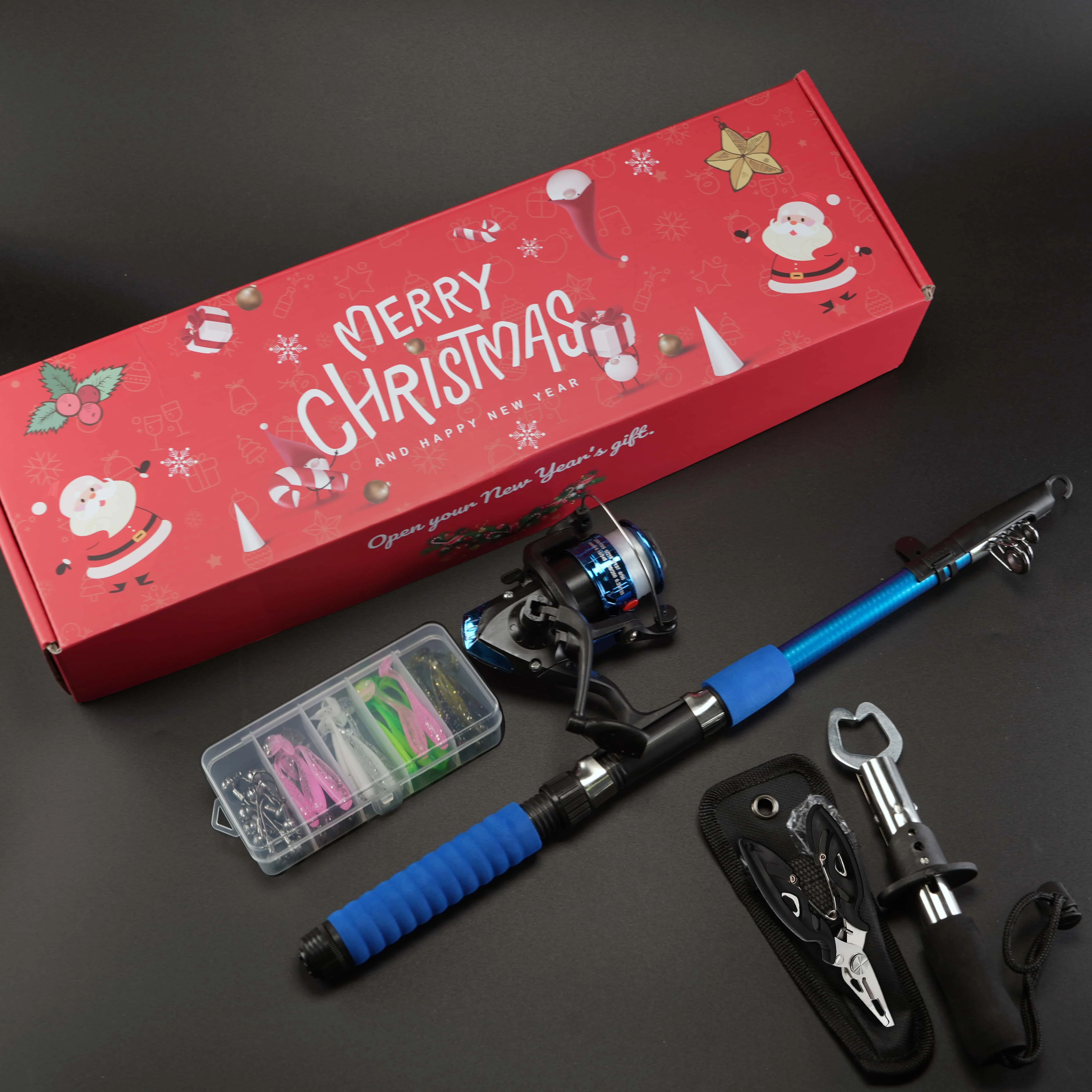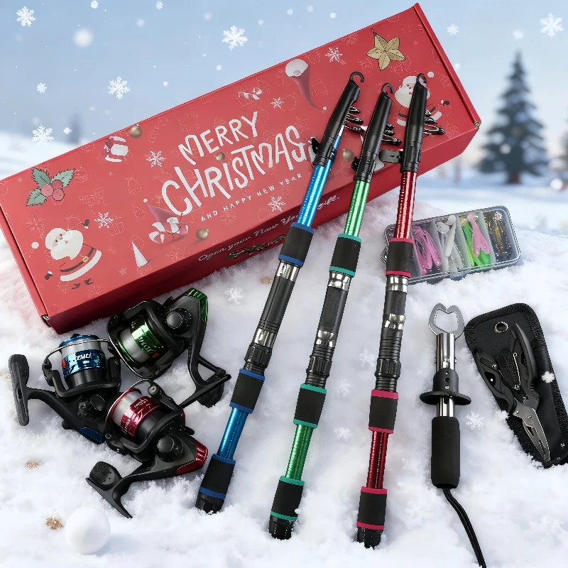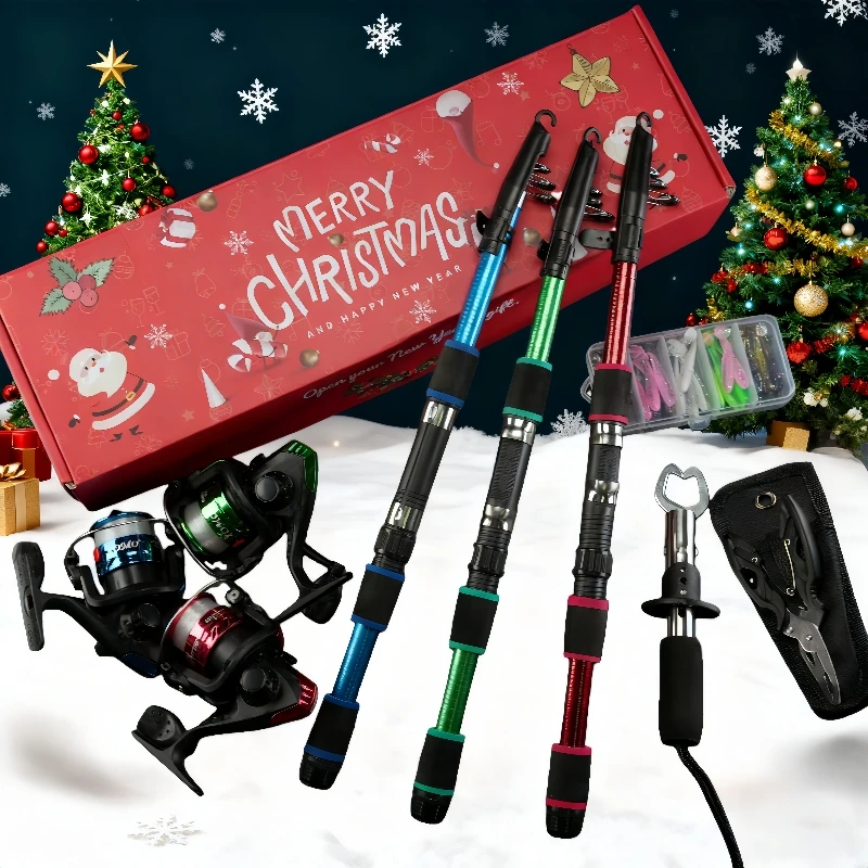 BRAVMACK Kit completo de pescador para Navidad: combinación de caña de pescar y carrete equipado con pinza para peces y juego de señuelos | Regalo navideño