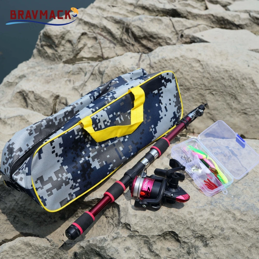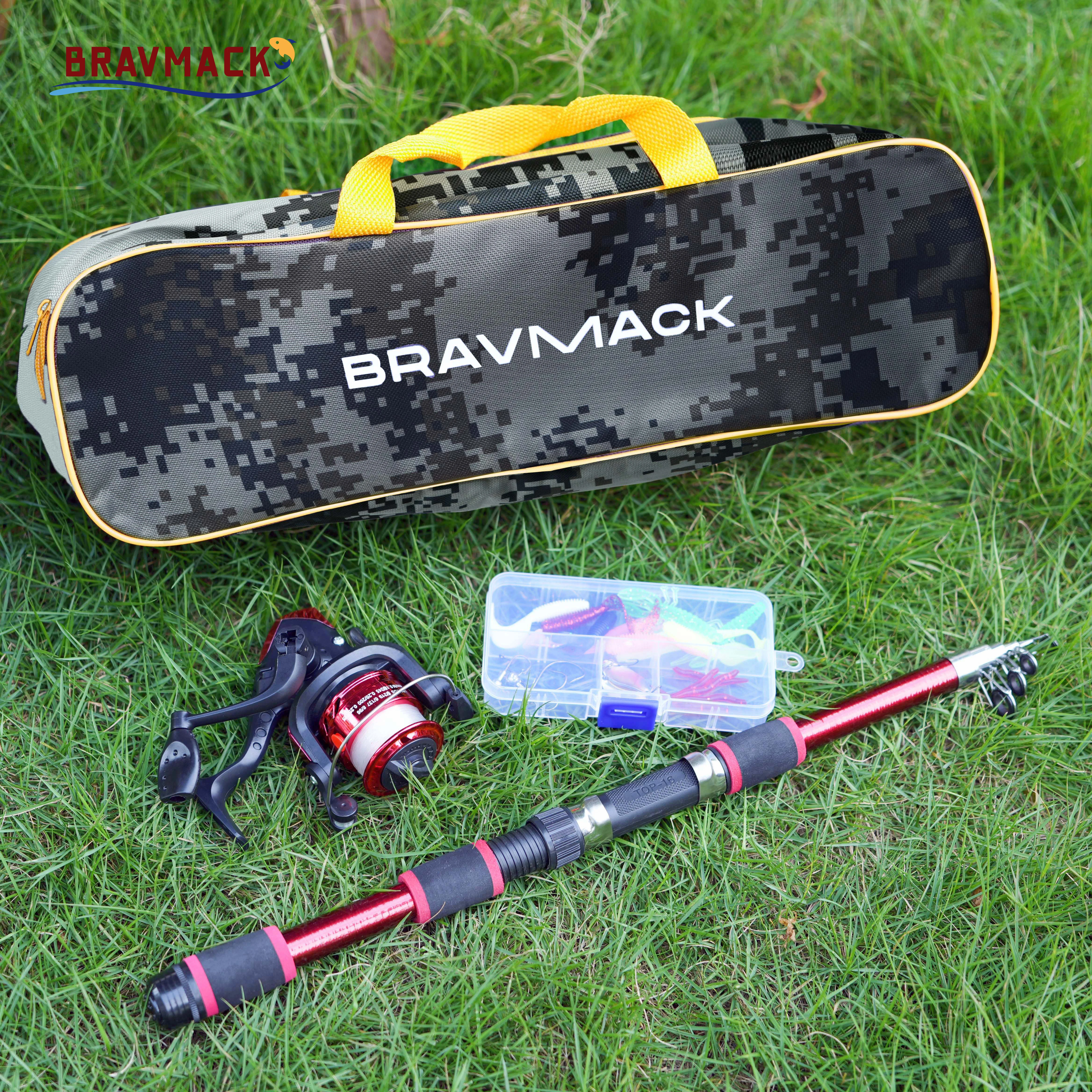 BRAVMACK Kit completo para principiantes, caña de pescar telescópica de 1,8 m/5,9 pies y carrete giratorio combinado con señuelos, anzuelos y bolsa de transporte -