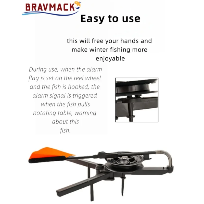 Con su diseño intuitivo, el marcador de bandera con plataforma triangular portátil para pesca en hielo BRAVMACK es fácil de configurar y usar, mejorando su experiencia de pesca.