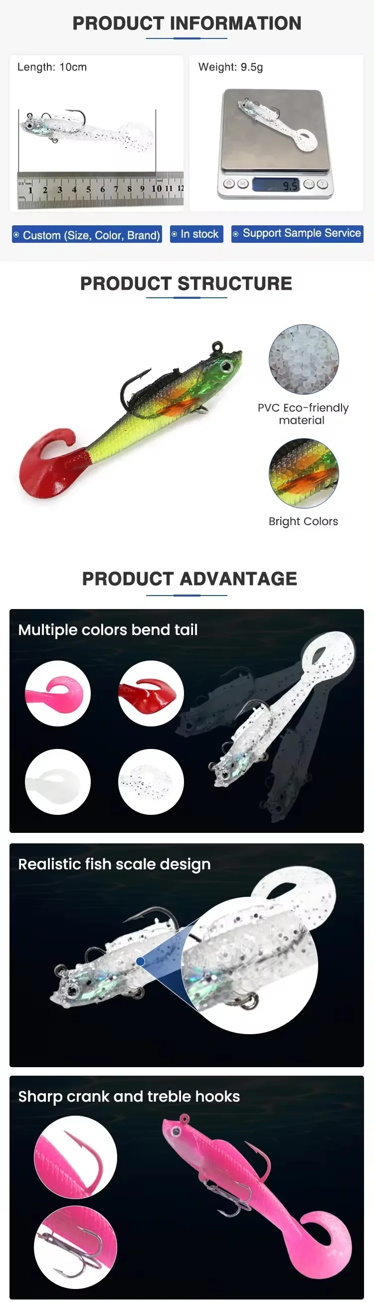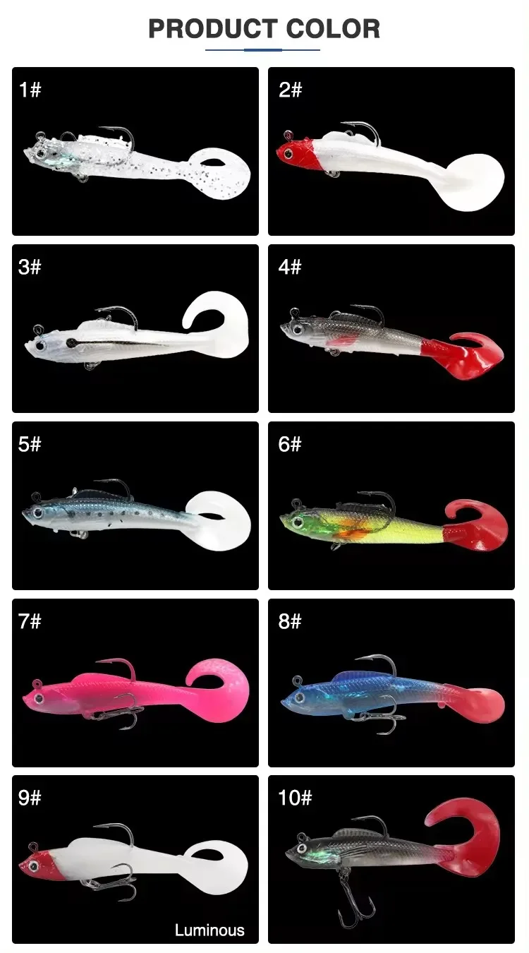 • Equipo de pesca eficaz:Diseñado para brindar eficacia, este señuelo de cebo blando de 10 cm y 9,5 g atrae una amplia gama de especies de peces, mejorando su experiencia de pesca.