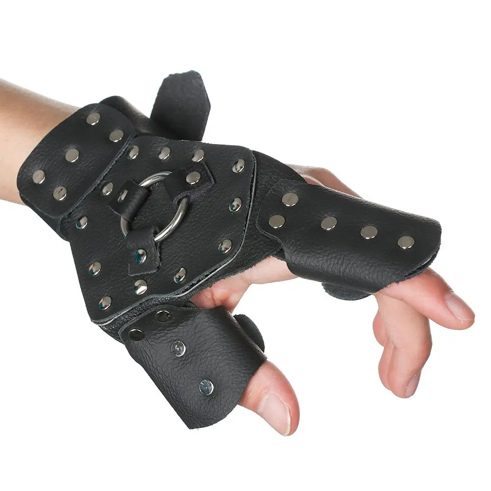 Está equipado con 2 placas de acero inoxidable para proteger tus dedos. Adecuado para mano derecha e izquierda Color: Negro Tamaño: talla única Material: cuero PU + remache de acero inoxidable + placa de acero inoxidable Peso: 79 g Paquete incluido: 1 pieza de brazaletes de pesca.