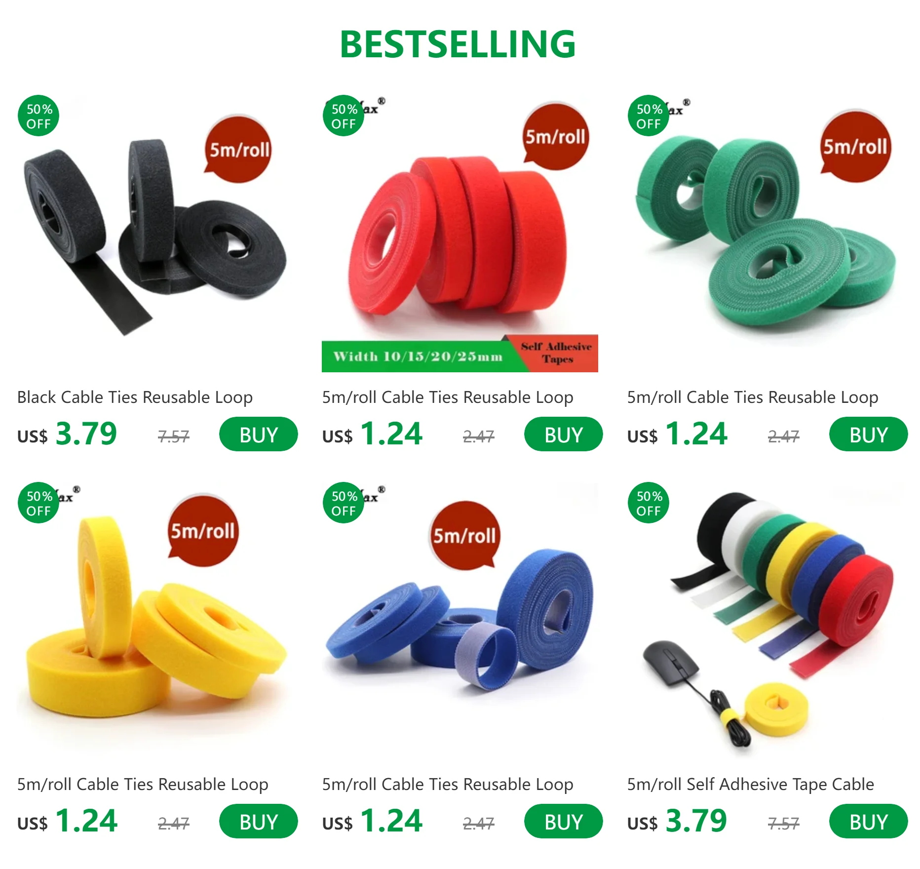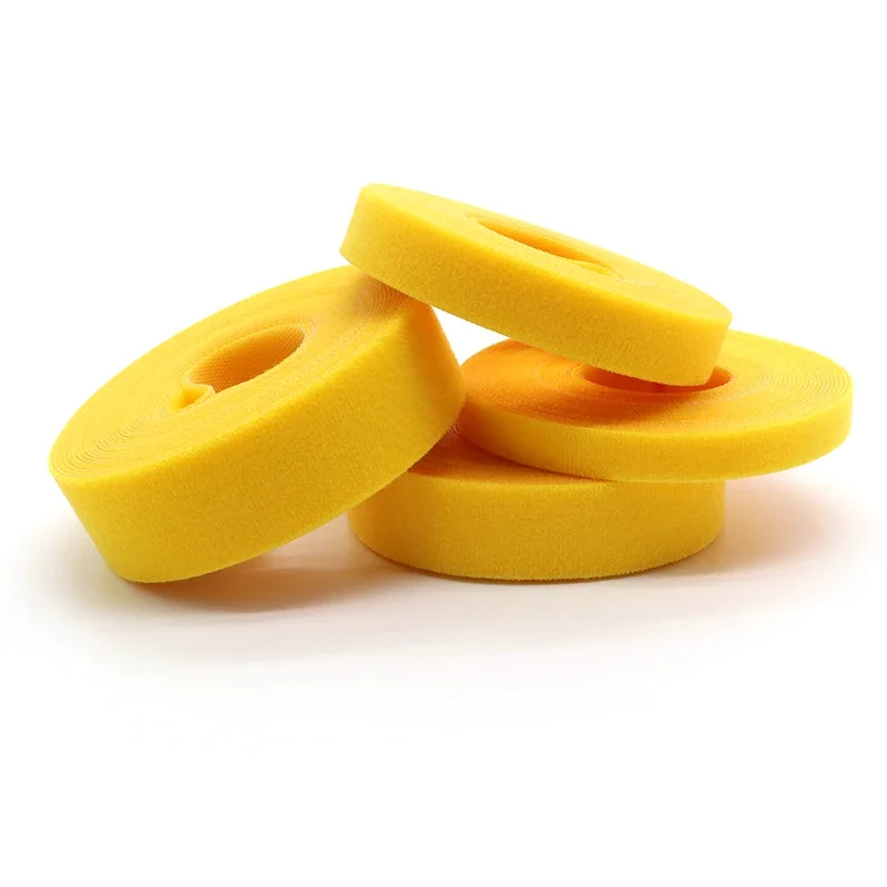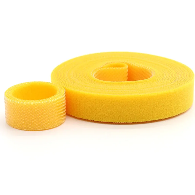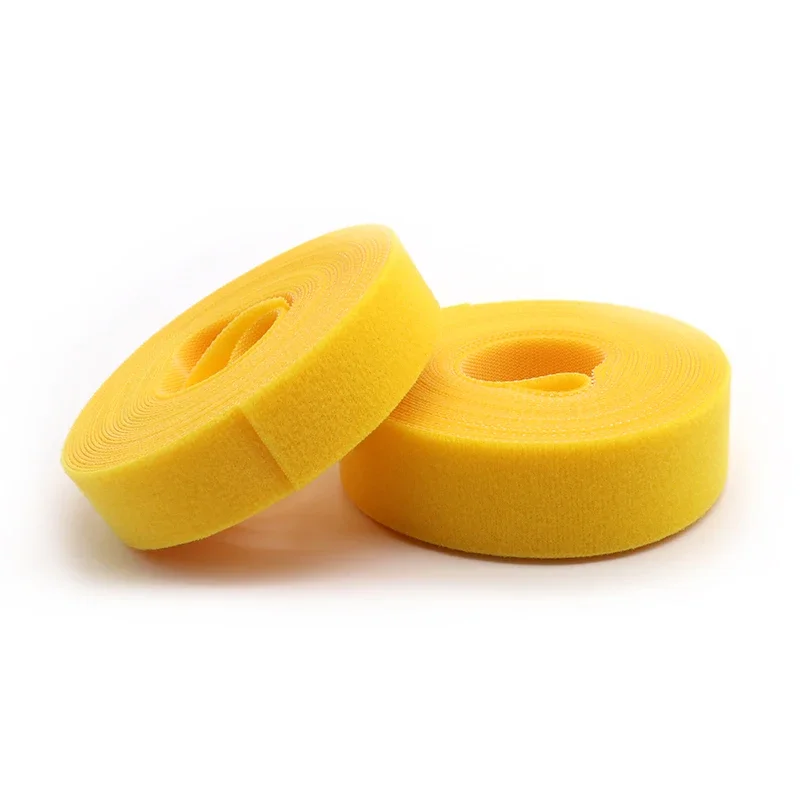 Bridas para cables de 5m/rollo, paquete de bucle reutilizable, correa de nailon amarilla autoadhesiva, organizador, Clip, soporte para cables, cinta de sujeción de gestión