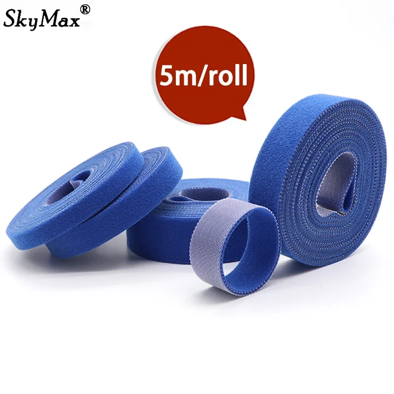 Bridas para cables de 5m/rollo, paquete de bucle reutilizable, correa de nailon azul autoadhesiva, organizador, Clip, soporte para cables, cinta de sujeción de gestión