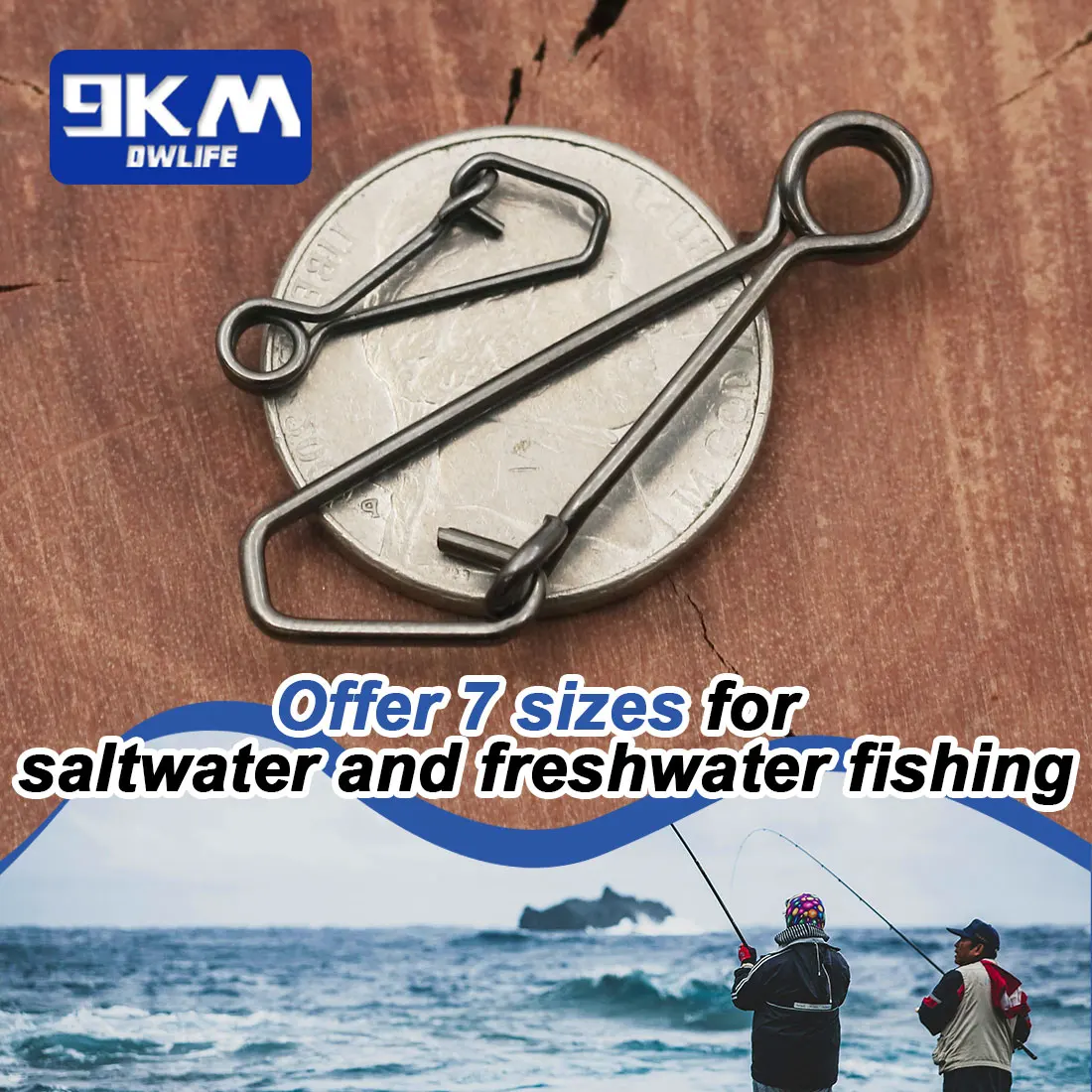 Resistencia a la corrosión de cambio rápido: el broche de Clip está diseñado para un bloqueo de apertura rápida, fácil de usar, cambio rápido de señuelos o líneas. Estos broches de acero inoxidable asegurarán una alta potencia de tracción para su uso diario. El eslabón giratorio de agua salada podría utilizarse tanto en agua salada como en agua dulce. Podría ser adecuado no solo para agua dulce en ríos y lagos, sino también para la pesca en el mar.