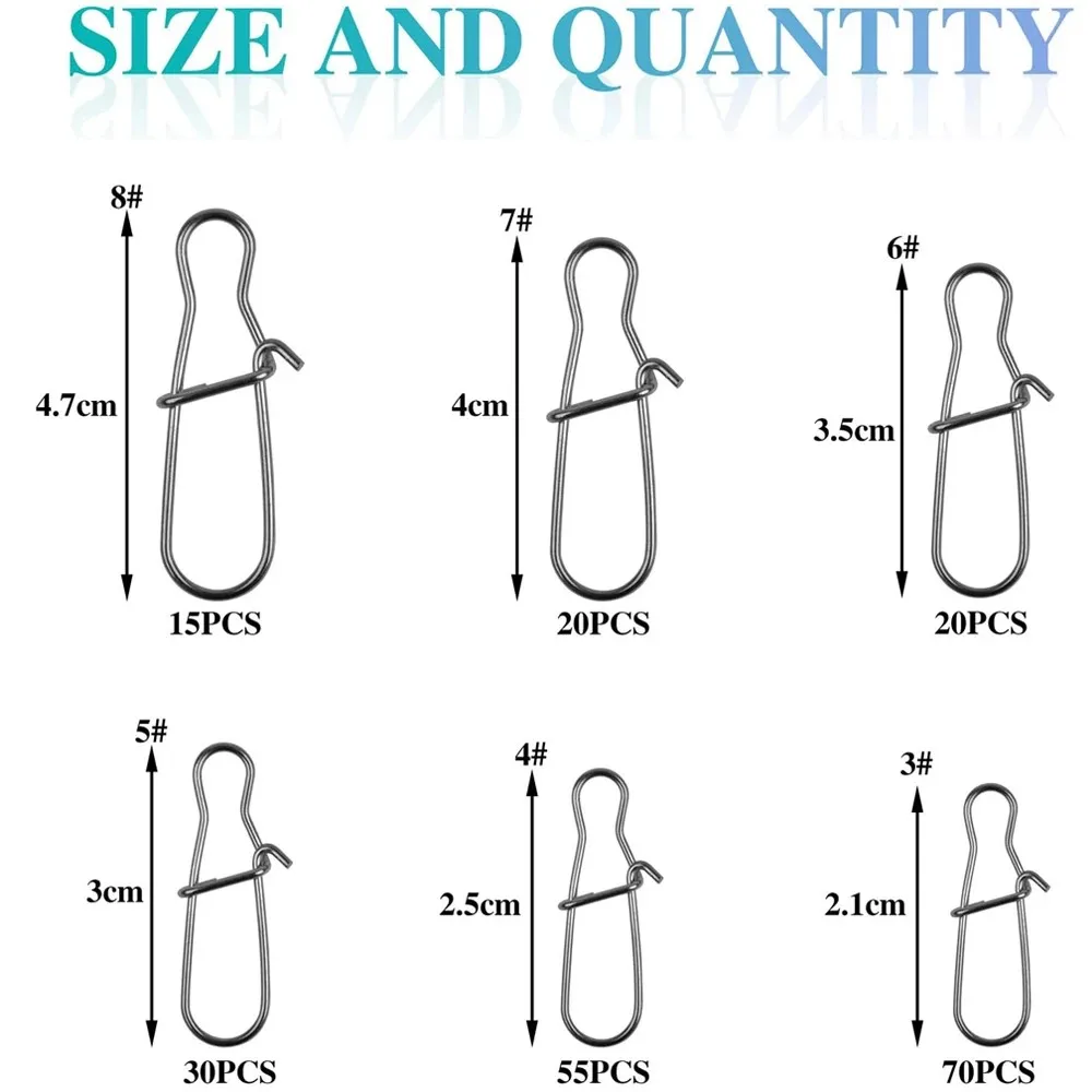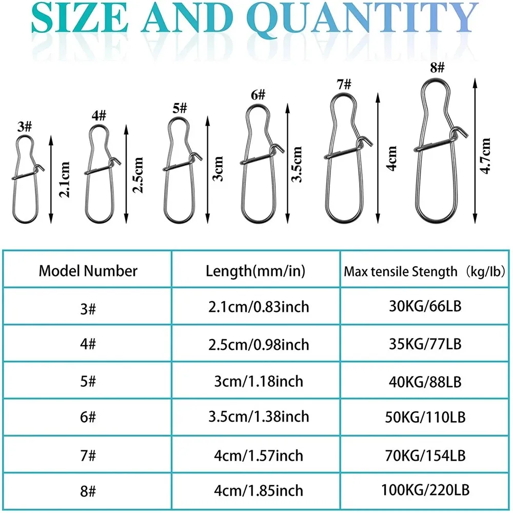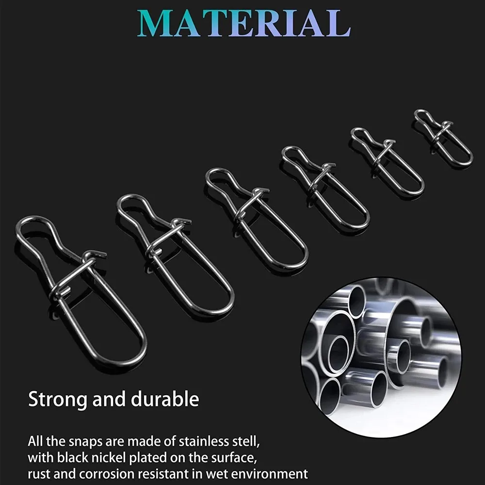 CONFIABLE: estos conectores de pesca a presión son más fuertes y resistentes que los normales, perfectos para usar en agua salada, curricán de alta velocidad, jigging, pesca en alta mar. El tamaño pequeño funcionaría muy bien para agua dulce como la pesca de lubina.