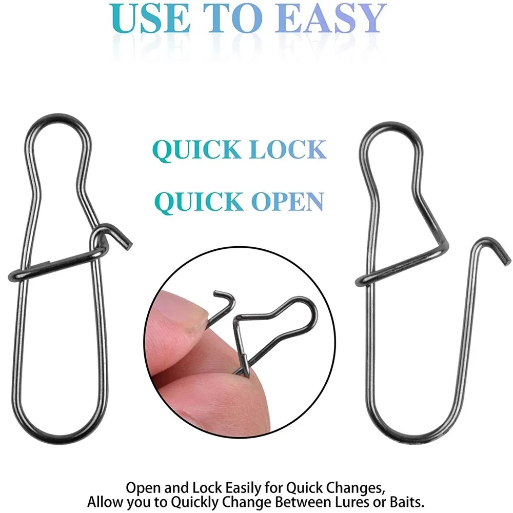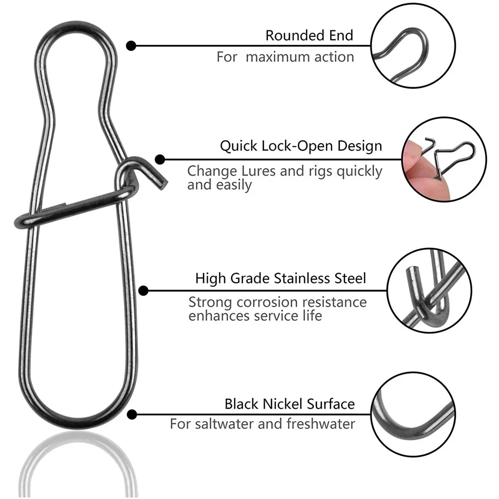 CONVENIENTE: El diseño de bloqueo-apertura rápido, puede cambiar los líderes o señuelos en segundos. El mango del anillo presenta un diseño único para reducir la resistencia al agua al ceder el agua y también mejorar la sensibilidad del grupo de pesca.