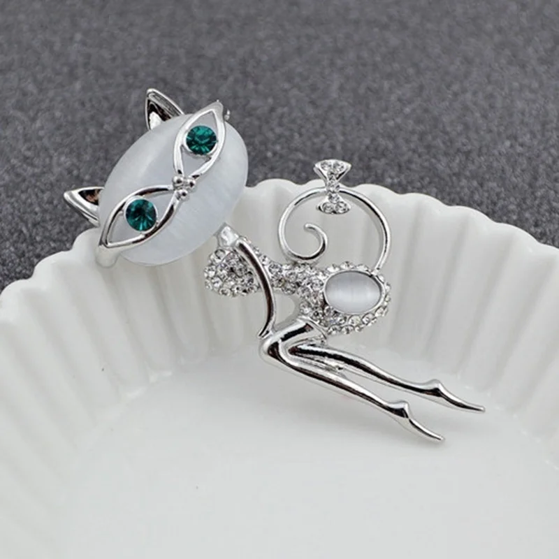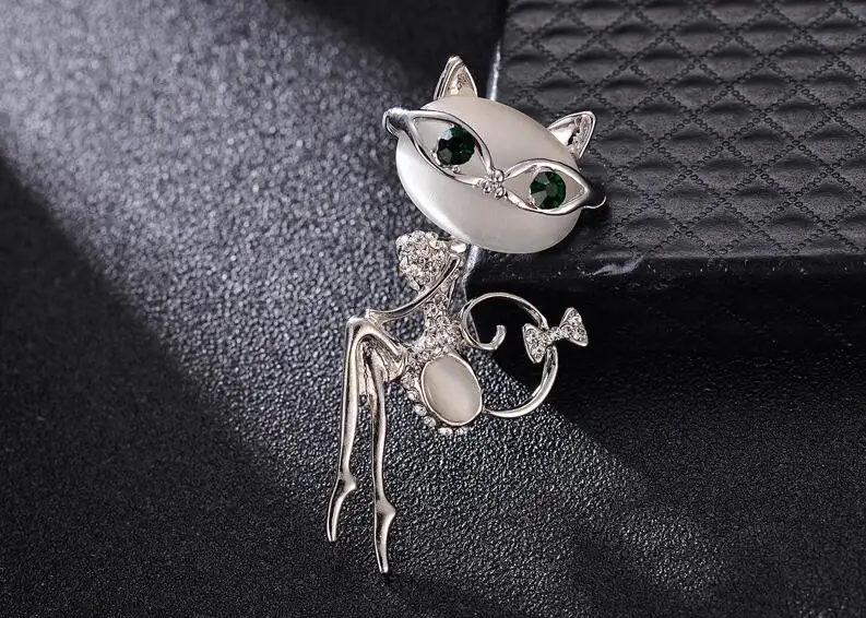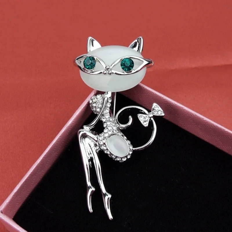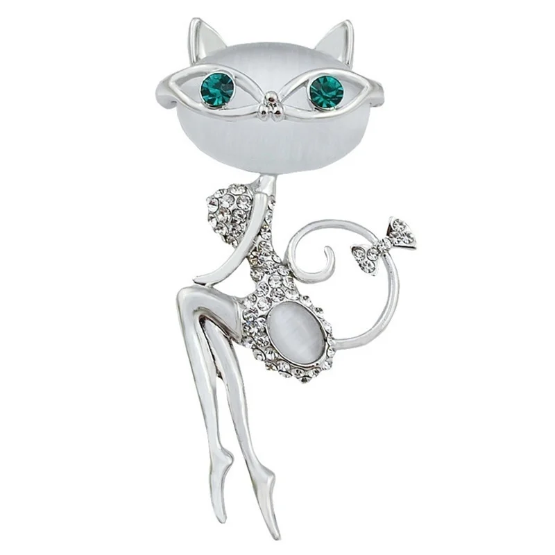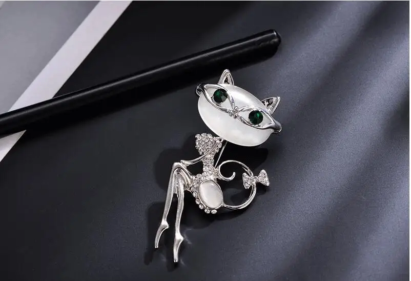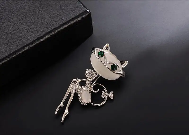 Broche de piedra de ojo de gato de gatito súper bonito de ópalo, Collar de cristal, vestido creativo, accesorios de boda sexys de estilo moderno