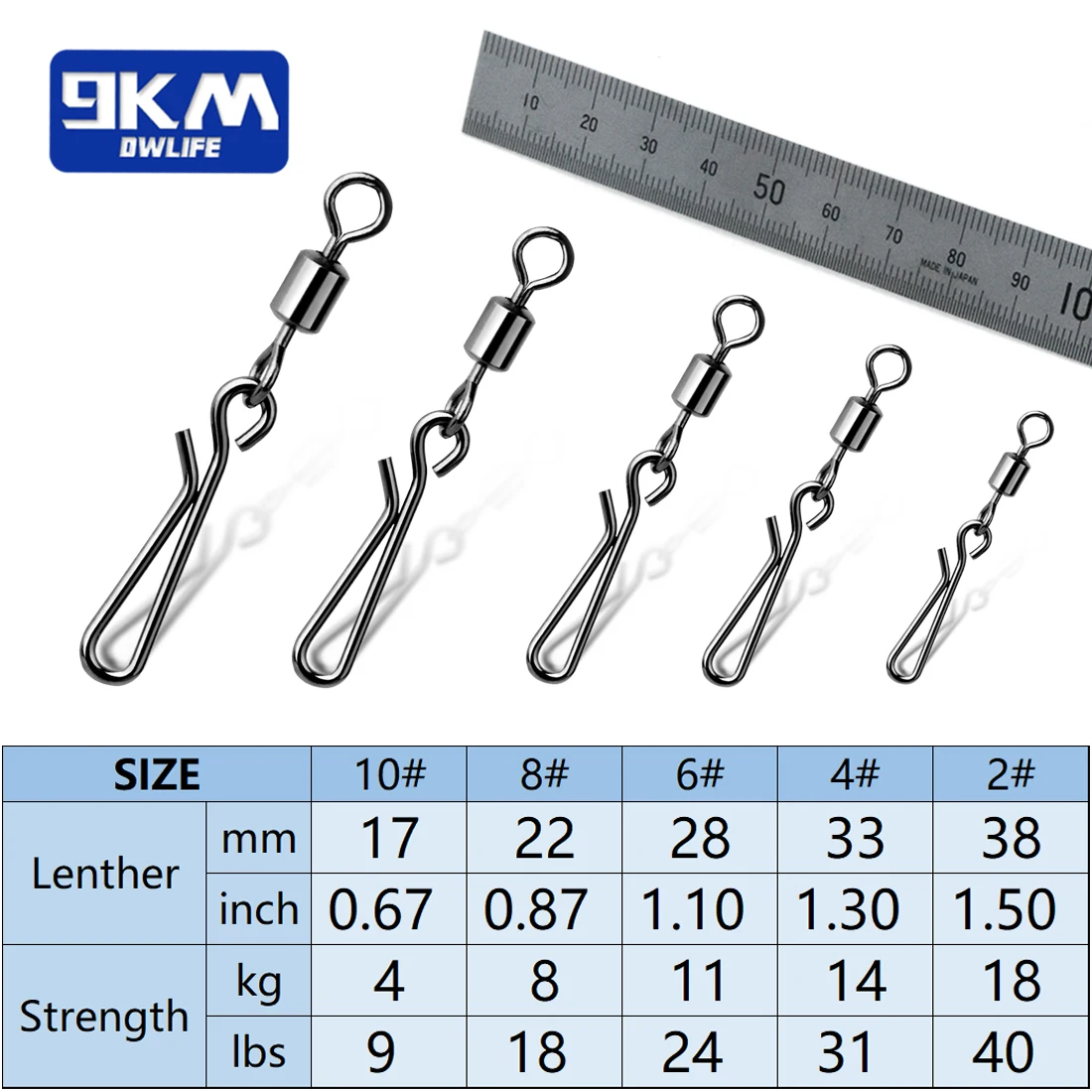 Adecuado para uso de pesca múltiple: ofrecemos varios tamaños para su elección. Y la resistencia de estos giratorios a presión es diferente de 4 kg a 18 kg. Estos tamaños satisfarán sus necesidades para diferentes usos. Confirme los tamaños adecuados antes de comprarlos. Le brinda la mejor experiencia.