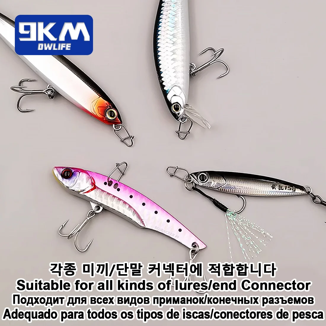 Diseño Duo Lock:El diseño duo lock crea una conexión muy segura que es fácil de abrir cuando necesita cambiar señuelos, pesas o aparejos.Proporcionará conexiones estables para sus conectores, ya no los perderá.Esto es muy importante para la pesca diaria y el uso de este producto no perderá ninguna oportunidad de pescar peces grandes.