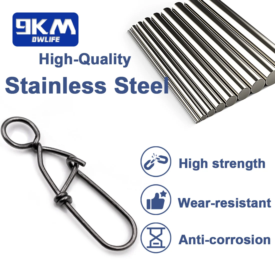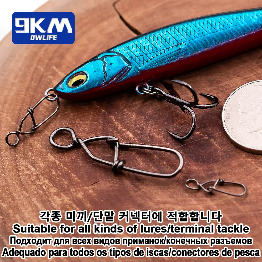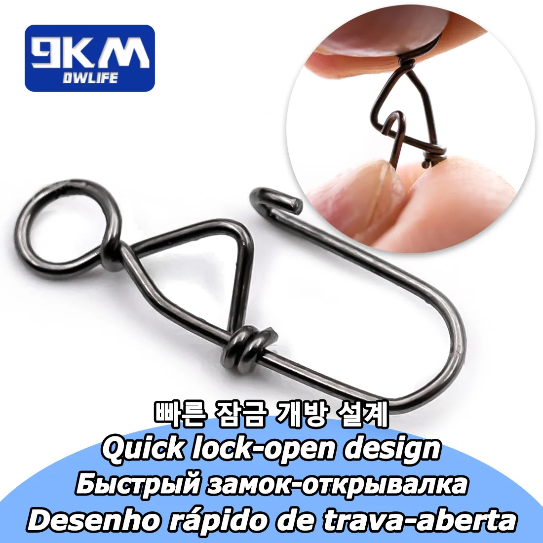 【Snap Lock & Solid Ring】 Quick lock-unlock fishing snap swivels, change fishing lures and leaders rapidly. Solid welding ring connected smoothly with fishing line.