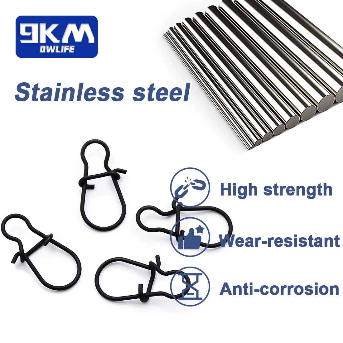 Broches de pesca de acero inoxidable 304H de alta resistencia con diseño de bloqueo dúo, la forma mini hace que sea fácil de acoplar con Señuelos de Pesca, jigs pre-rigged, swiwbait,crankbait, softbait, learders de Pesca, las cucharas son más fáciles y los anzuelos se adhieren a su caña de pescar. Excelente resistencia a la corrosión, fácil de atar con el conector de la línea de pesca, sin preocupaciones durante mucho tiempo en agua dulce, incluso en la pesca de agua salada.