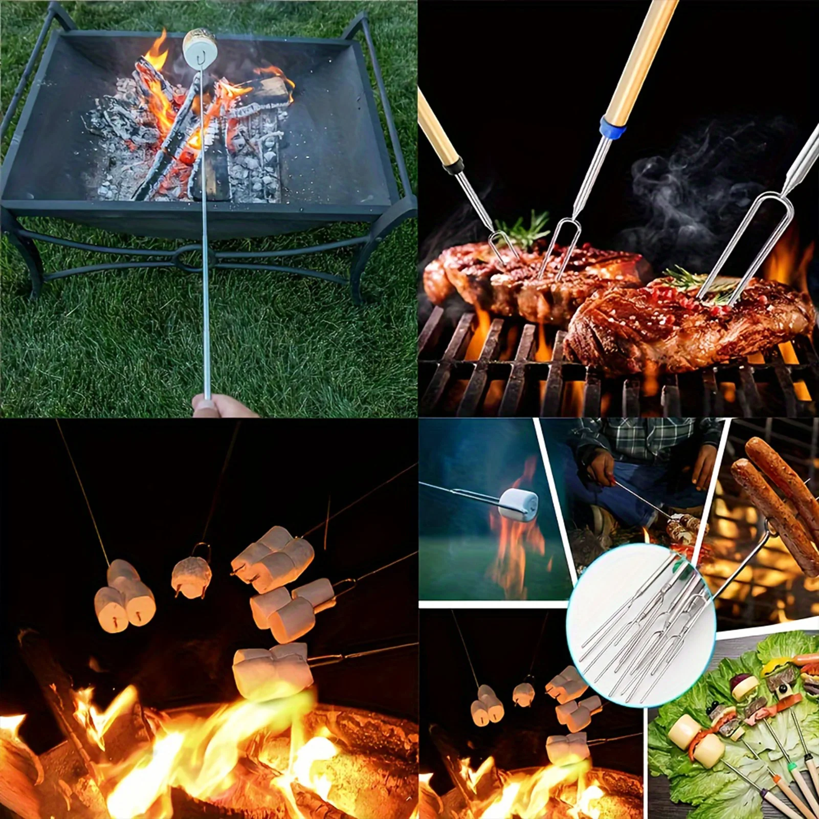 Juego de herramientas para barbacoa versátil: estas tenedoras telescópicas de acero inoxidable son perfectas para asar malvaviscos, hot dogs, kebabs y más, lo que las convierte en imprescindibles para cualquier barbacoa.