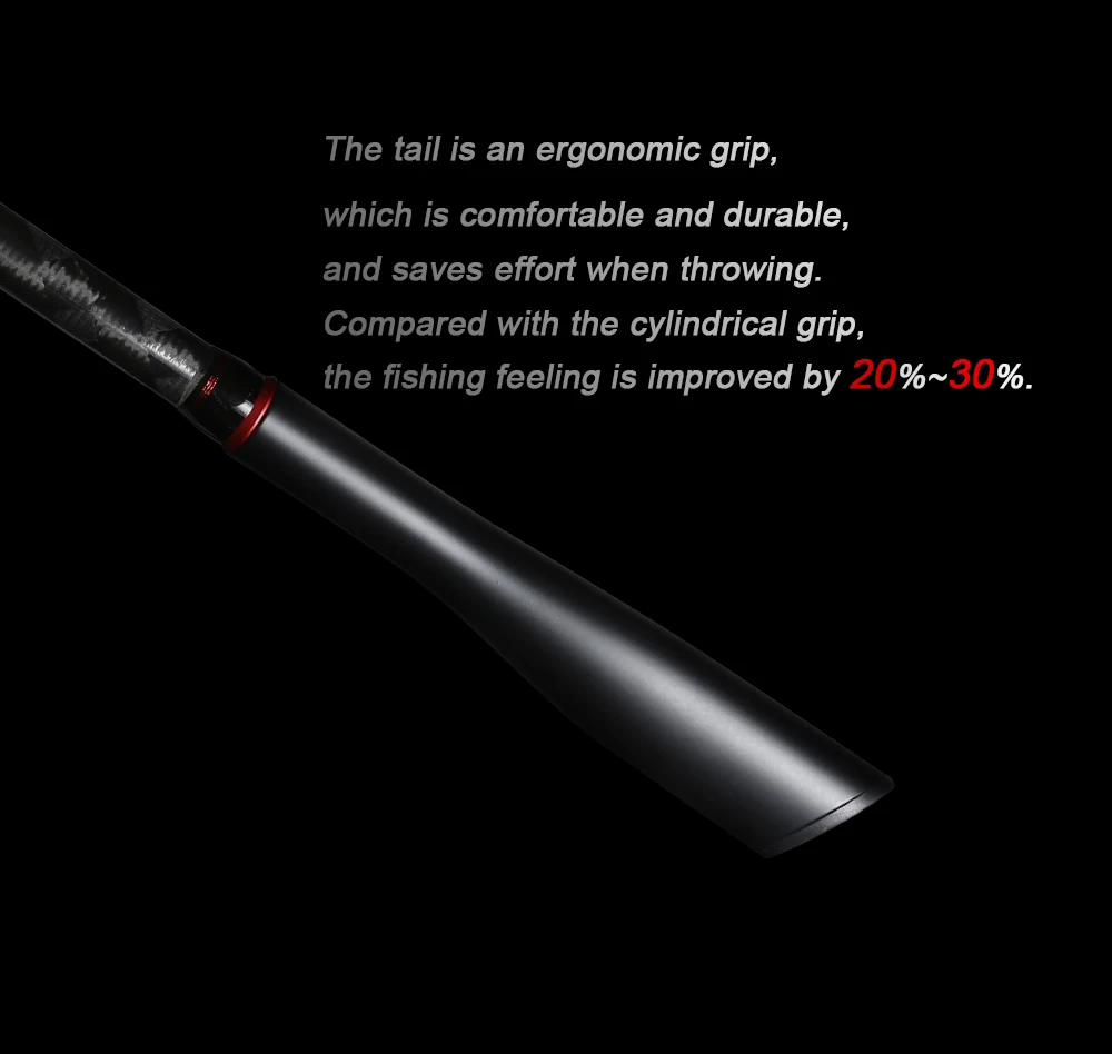 La cola es un método de agarre ergonómico, cómodo y duradero, y ahorra esfuerzo al lanzar. En comparación con la plantilla cilíndrica, la sensación de pesca se ve mejorada por20% ~ 30%¡!