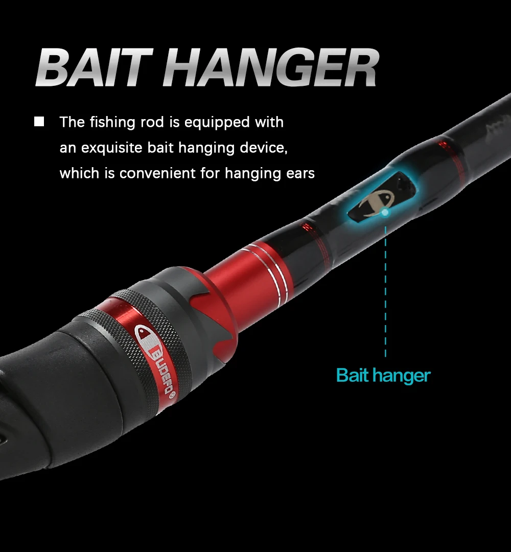 La caña de pescar está equipada con un exquisito dispositivo colgante para cebo, que es conveniente para colgar las orejas