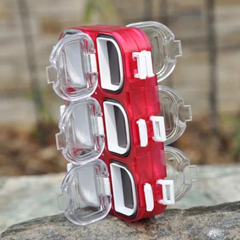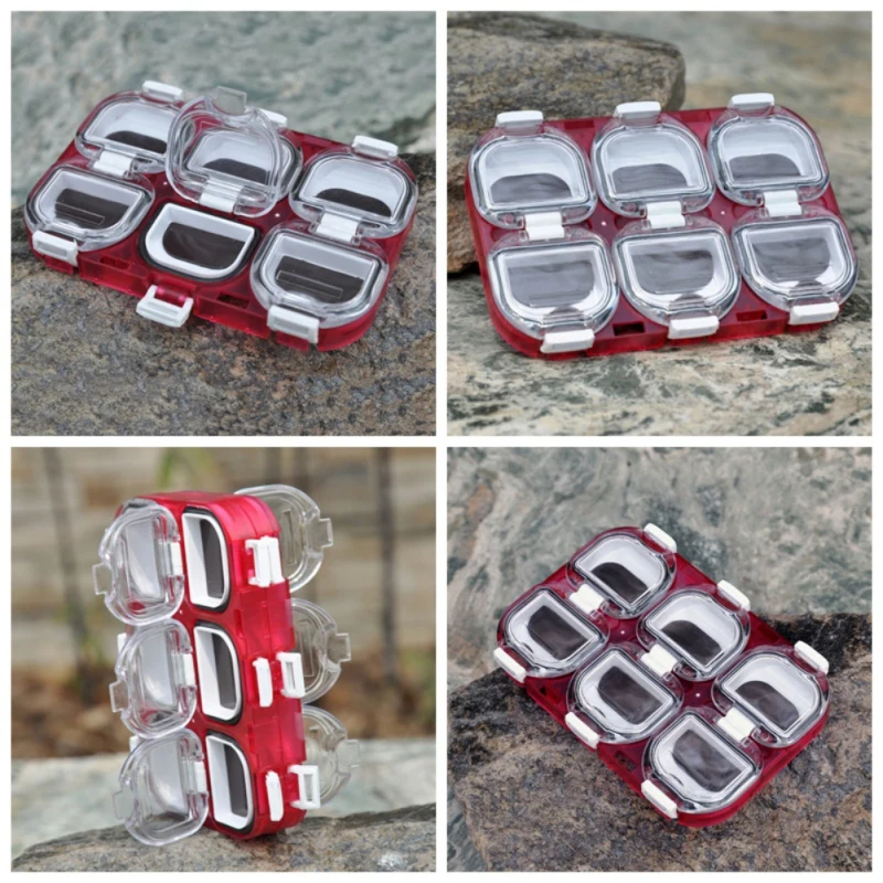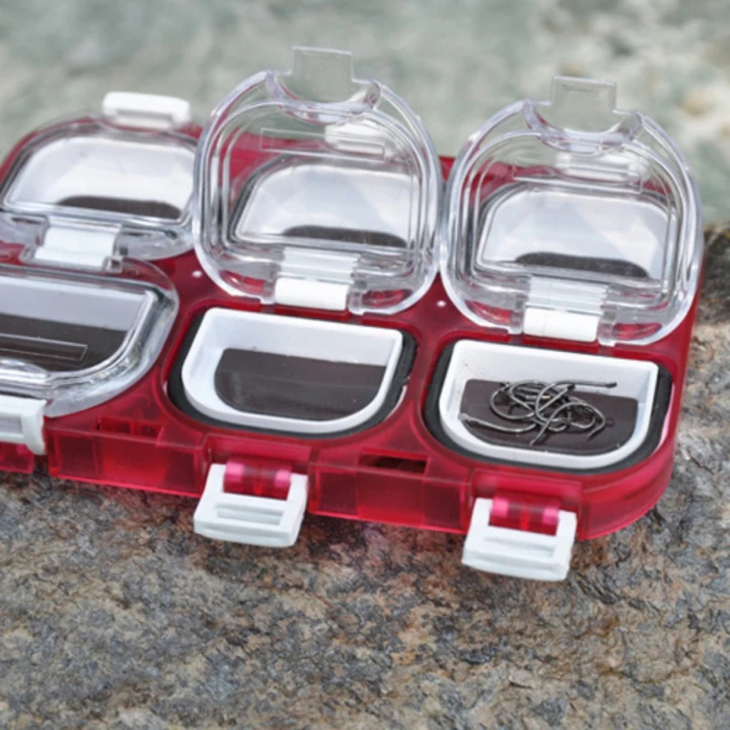 Características: Número de celdas: 6 Tamaño: 11 cm * 7,5 cm * 1,2 cm Peso: 53 g Descripción: Robusto y duradero, pequeño y portátil. Hay 6 pequeños compartimentos en el interior, puede colocar anzuelos de pesca, plomadas, flotadores, anillos de conexión y otros dispositivos de pesca en él. Diseño de arco de compartimentos separados, fácil de llevar. El exclusivo anillo de sellado hermético evita la entrada de agua. El paquete incluye: 1 * caja de almacenamiento de anzuelos